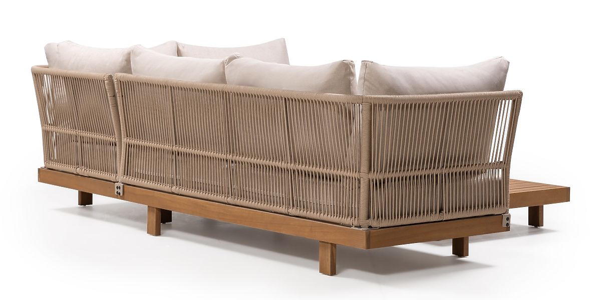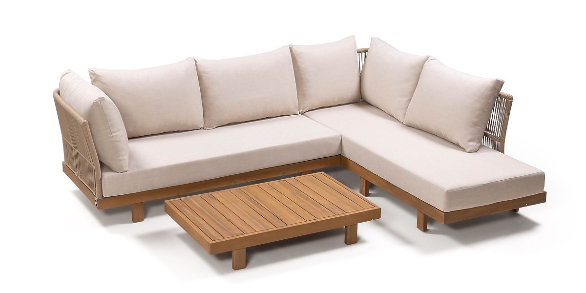 Vytvořte si svou vysněnou relaxační zónu na čerstvém vzduchu s naší bestsellerovou zahradní rohovou sedačkou Borgetto! Její pevná konstrukce z odolného akáciového dřeva a práškově lakovaného hliníku zaručuje nejen mimořádnou odolnost, ale také jedinečný vzhled, který rozhodně upoutá pozornost. Ručně pletené opěradlo z odolného provazu odolného proti UV záření je výjimečným prvkem, který dodá vaší zahradě nebo terase unikátní, designový charakter. Součástí rohové sedačky Borgetto jsou silné polštáře se zipem, které vám zajistí mimořádně pohodlný odpočinek. Jejich potahy jsou vyrobeny z voděodolného polyesteru odolného proti UV záření, avšak pro zachování jejich trvanlivosti doporučujeme skladovat je na chráněném místě během deště. Kromě toho obdélníkový konferenční stolek, který je součástí sady, dokonale doplňuje celek a vytváří prostor pro stolování na čerstvém vzduchu nebo relaxaci u kávy. Je třeba zdůraznit, že dřevo použité k výrobě sady má certifikát FSC® – pochází z lesů spravovaných podle zásad udržitelného rozvoje. Díky tomu nejen investujete do pohodlí, ale také pečujete o budoucnost naší planety. Aby nábytek zůstal v perfektním stavu po dlouhou dobu, doporučuje se během zimního období skladovat jej na suchém a větraném místě pod přístřeškem, aby byl chráněn před povětrnostními vlivy. Nábytek vyrobený z přírodního dřeva si zachovává jeho charakteristické vlastnosti, proto jsou veškeré nerovnosti, oděrky, škrábance, suky, praskliny, štěrbiny, dírky, prohlubně, nerovné hrany, různé textury, barevné rozdíly a další nepravidelnosti ve struktuře záměrně zachovány během výrobního procesu. Tyto vlastnosti podtrhují autentičnost materiálu a dodávají každému našemu produktu unikátní charakter, což může vést k rozdílům ve vzhledu oproti prezentovaným fotografiím.