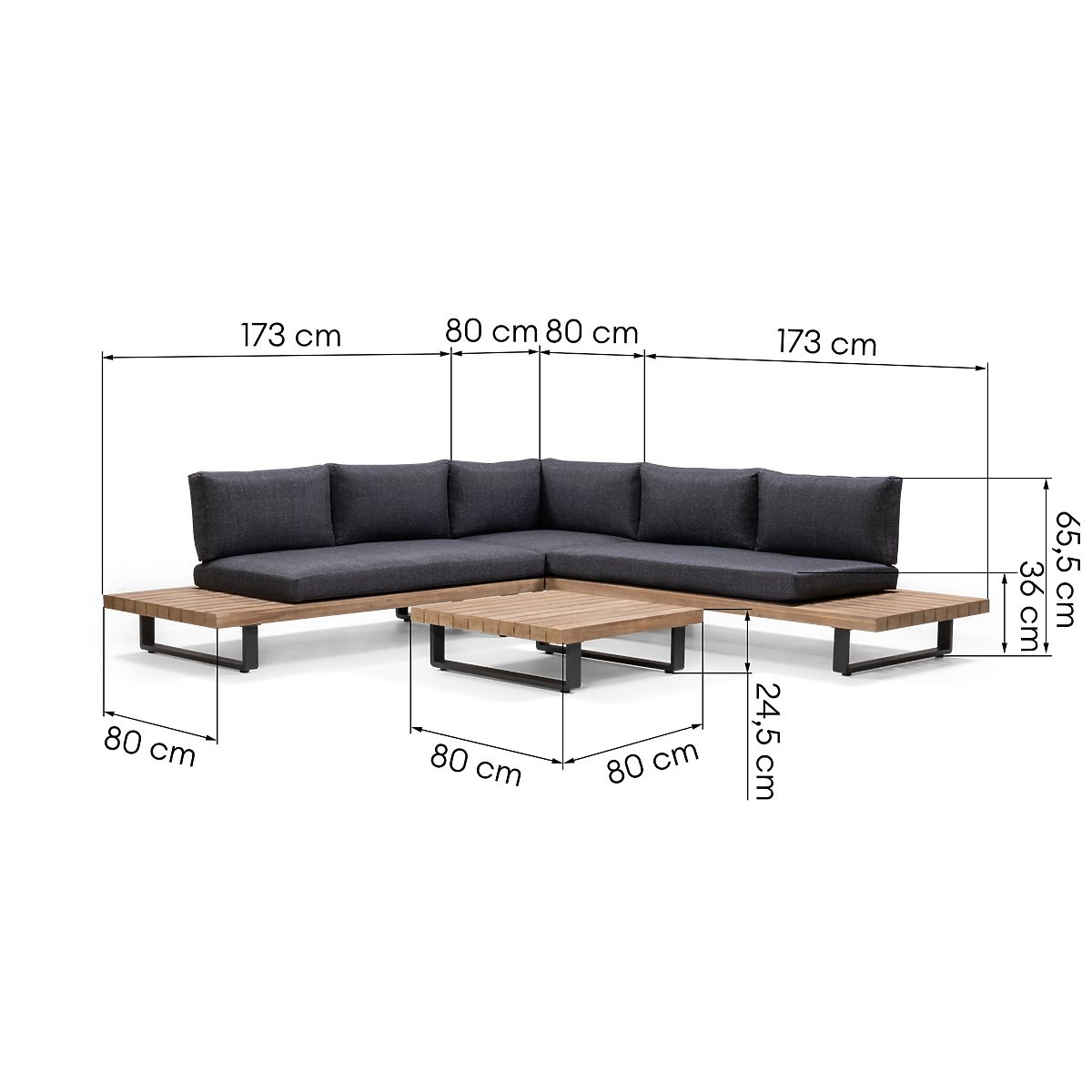 - Konstrukce z odolného akáciového dřeva s teakovým vzhledem a práškově lakovaného hliníku