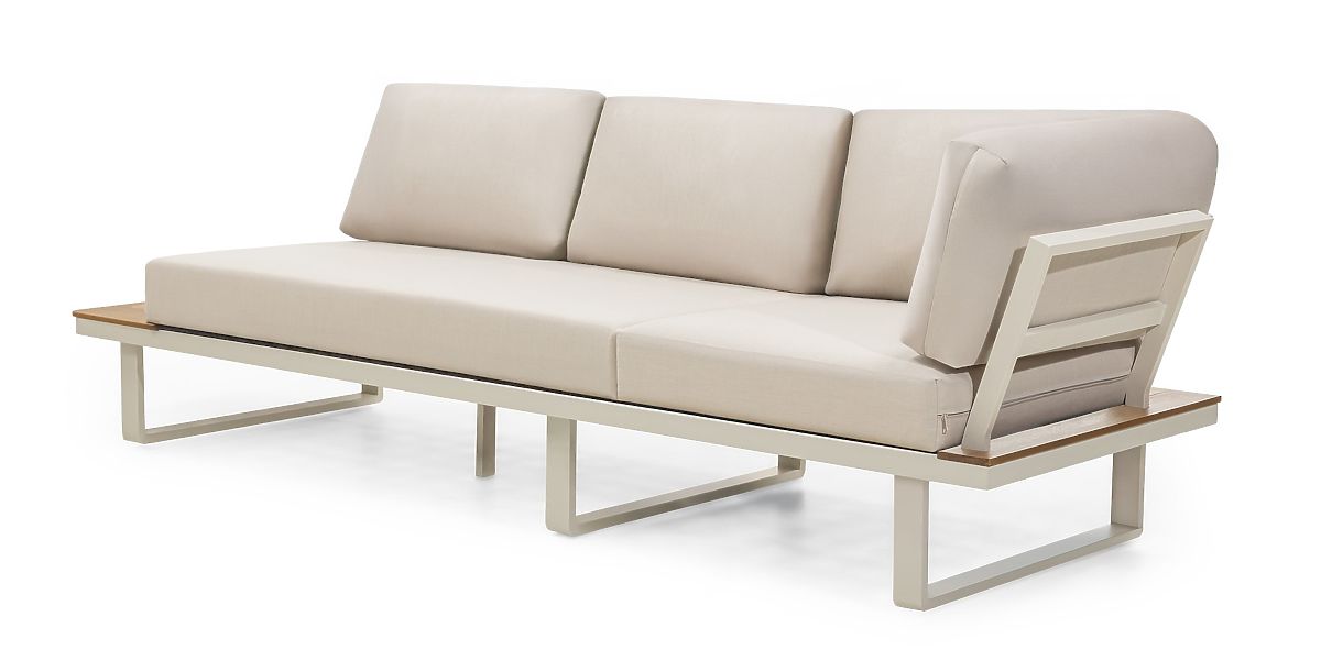 - Konstrukce z trvanlivého akáciového dřeva s teakovým povrchem a práškově lakovaného hliníku