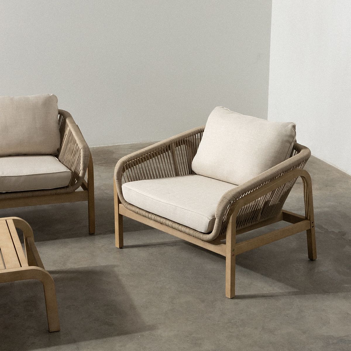 Zahradní sada Belpasso z eukalyptového dřeva s pletenými prvky pro stylový relax. .. více