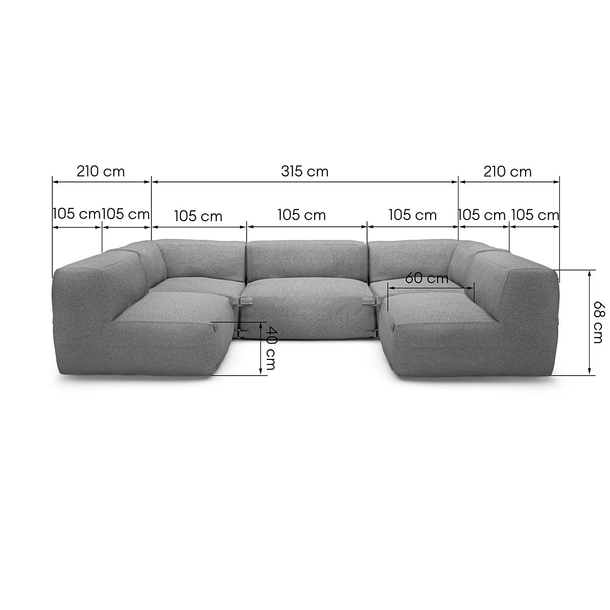 Modulární rohová sedačka Vacuum s pěti prvky a šedým potahem. .. více