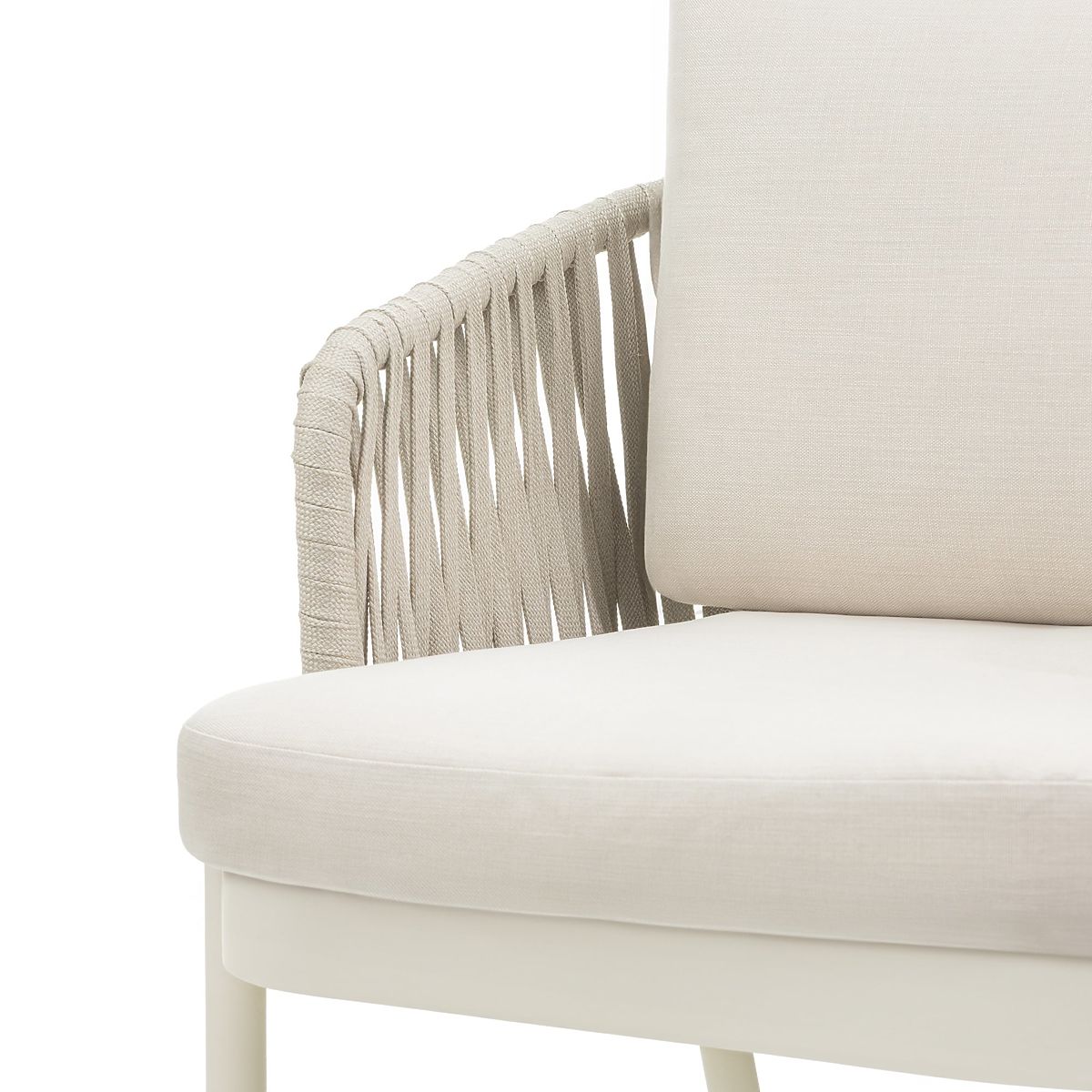 Židle pak okouzlí výjimečným komfortem – díky pleteným opěradlům z odolného provazu a měkkým polštářům z hydrofobní tkaniny. Je to ideální místo k odpočinku s šálkem kávy, knihou nebo při dlouhých rozhovorech s blízkými.