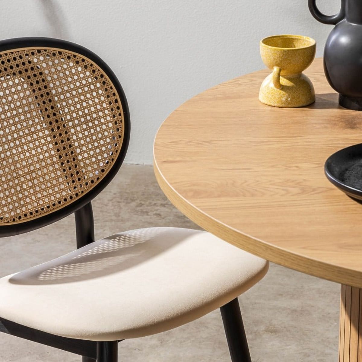 Lukafurniture.cz » Jídelna a kuchyně / Jídelní židle / Dřevěná židle Monet s vídeňským výpletem, ratan, samet, černá/béžová