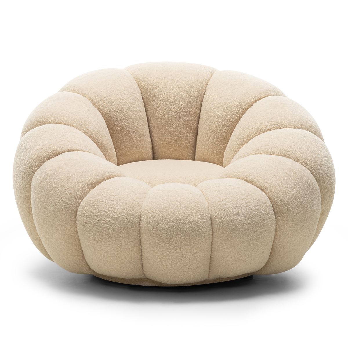 Lukafurniture.cz » Křesla a sezení / Křesla / Relaxační křeslo Venezia béžové s otočnou základnou, boucle, oblé tvary