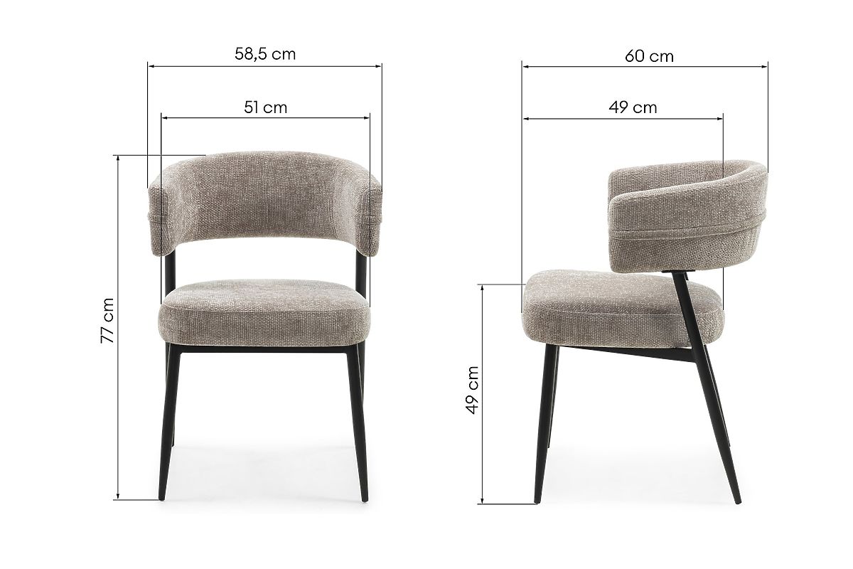 Židle Rosario představuje eleganci a pohodlí v moderním stylu, které se skvěle hodí do každé jídelny. Díky zaoblenému opěradlu a sedáku vyplněnému pěnou poskytuje výjimečný komfort i při delším sezení. Béžové čalounění z měkké tkaniny dodává interiéru útulnost a jemný půvab, přináší teplý akcent do výzdoby. Pevná kovová konstrukce, práškově lakovaná na černo, nejenže upoutá pozornost, ale také zaručuje trvanlivost a stabilitu na dlouhá léta. Je to ideální volba pro ty, kteří si cení vysoké kvality zpracování a estetického designu.