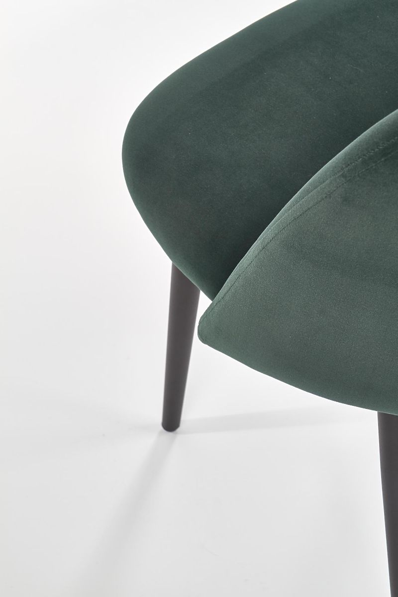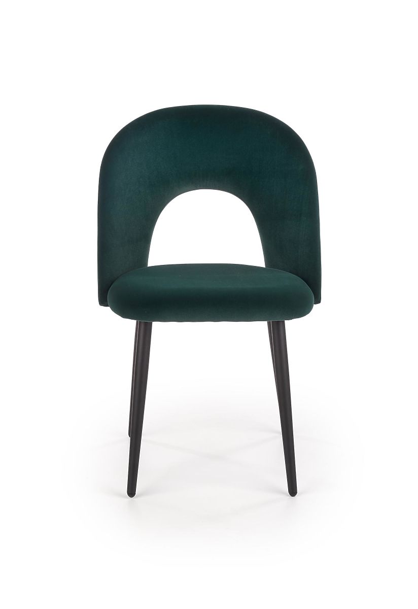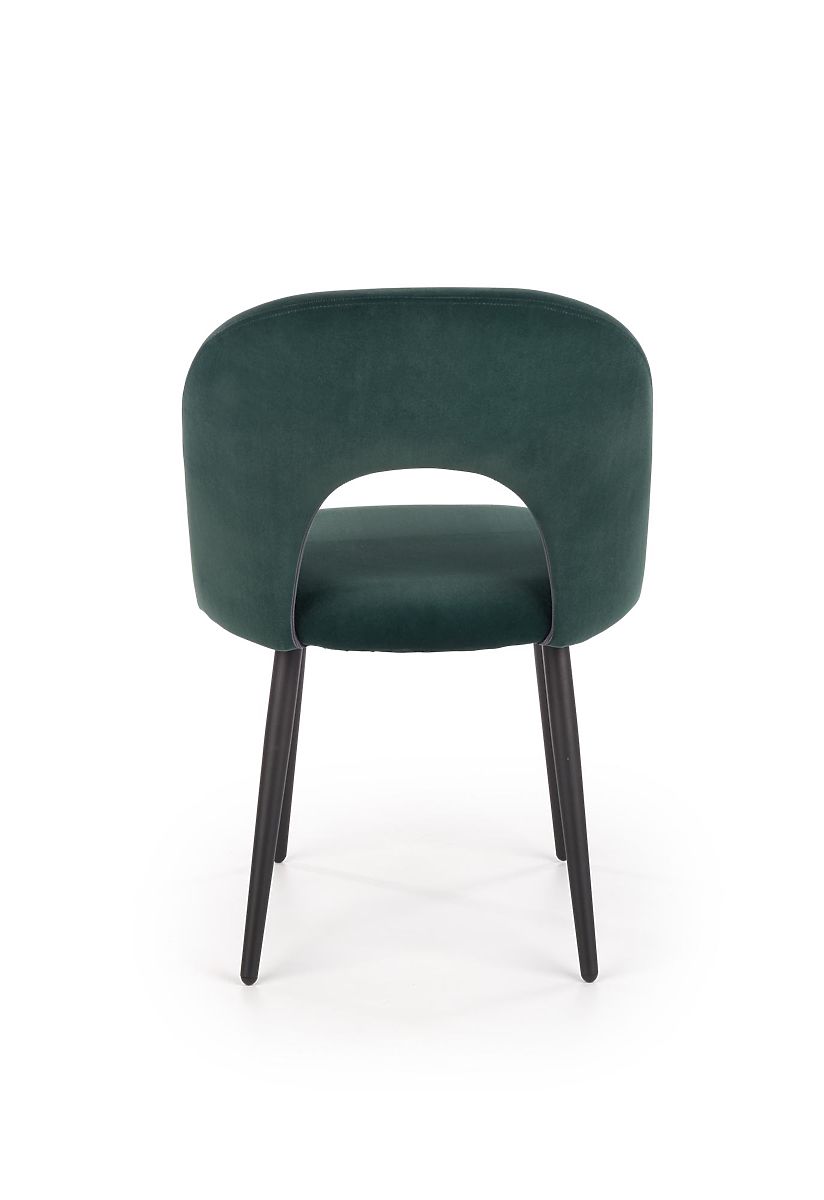 Židle K384 v tmavě zelené barvě z látky a oceli. .. více