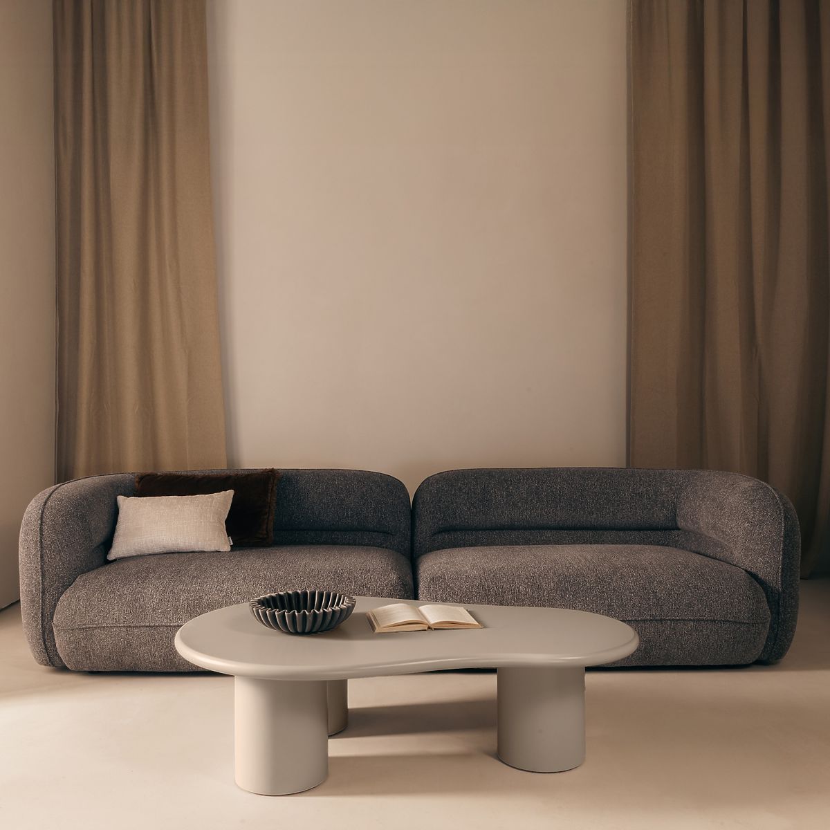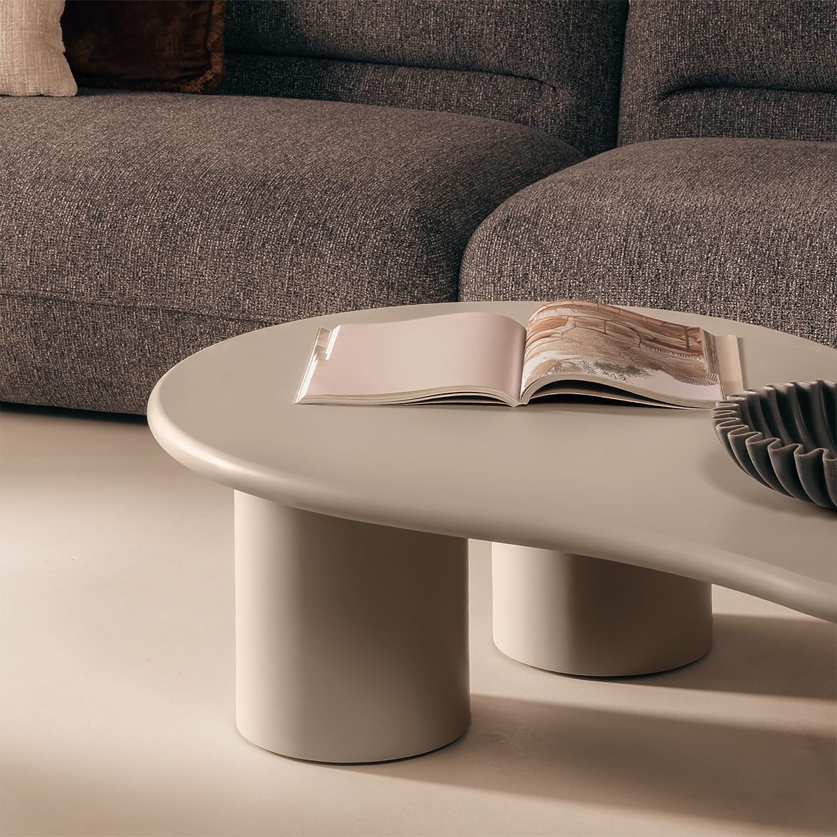 Lukafurniture.cz » Stoly a stolky / Konferenční stolky / Konferenční stolek Sucre tmavě béžový, matný, oblý tvar