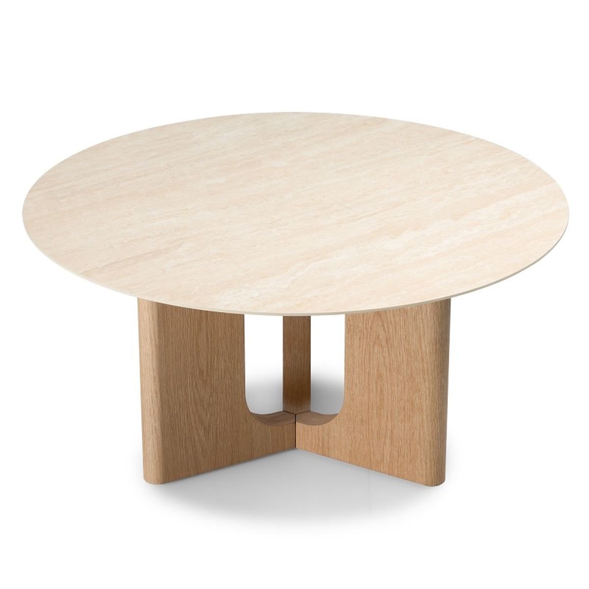 Kulatý stolek Klimt s travertinovým vzhledem a dubovou základnou. .. více