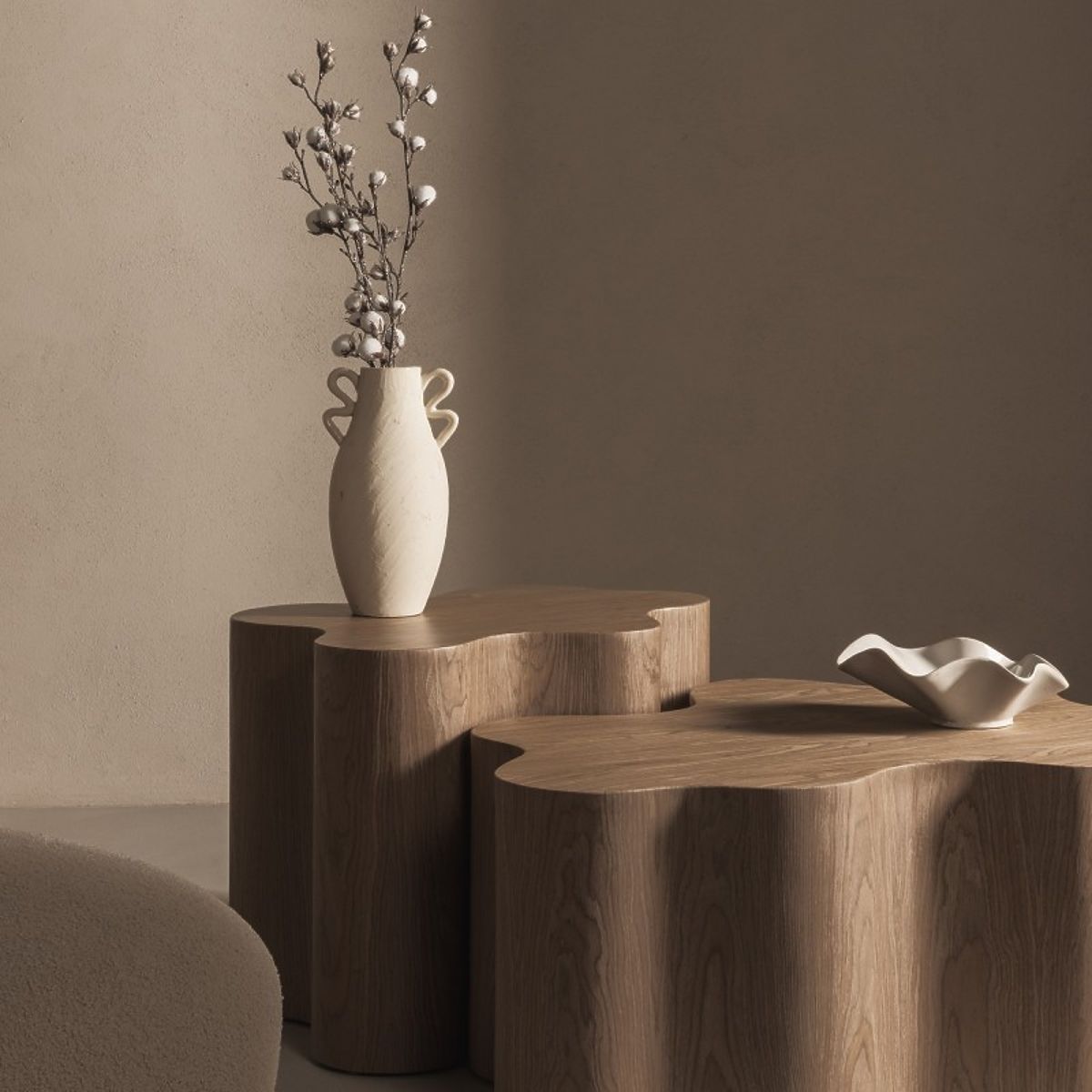Boční stolek Cosmo s nepravidelnou deskou a ořechovou dýhou. .. více