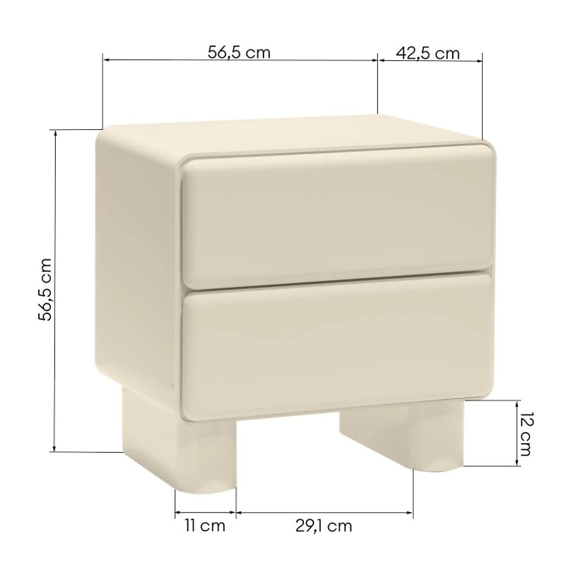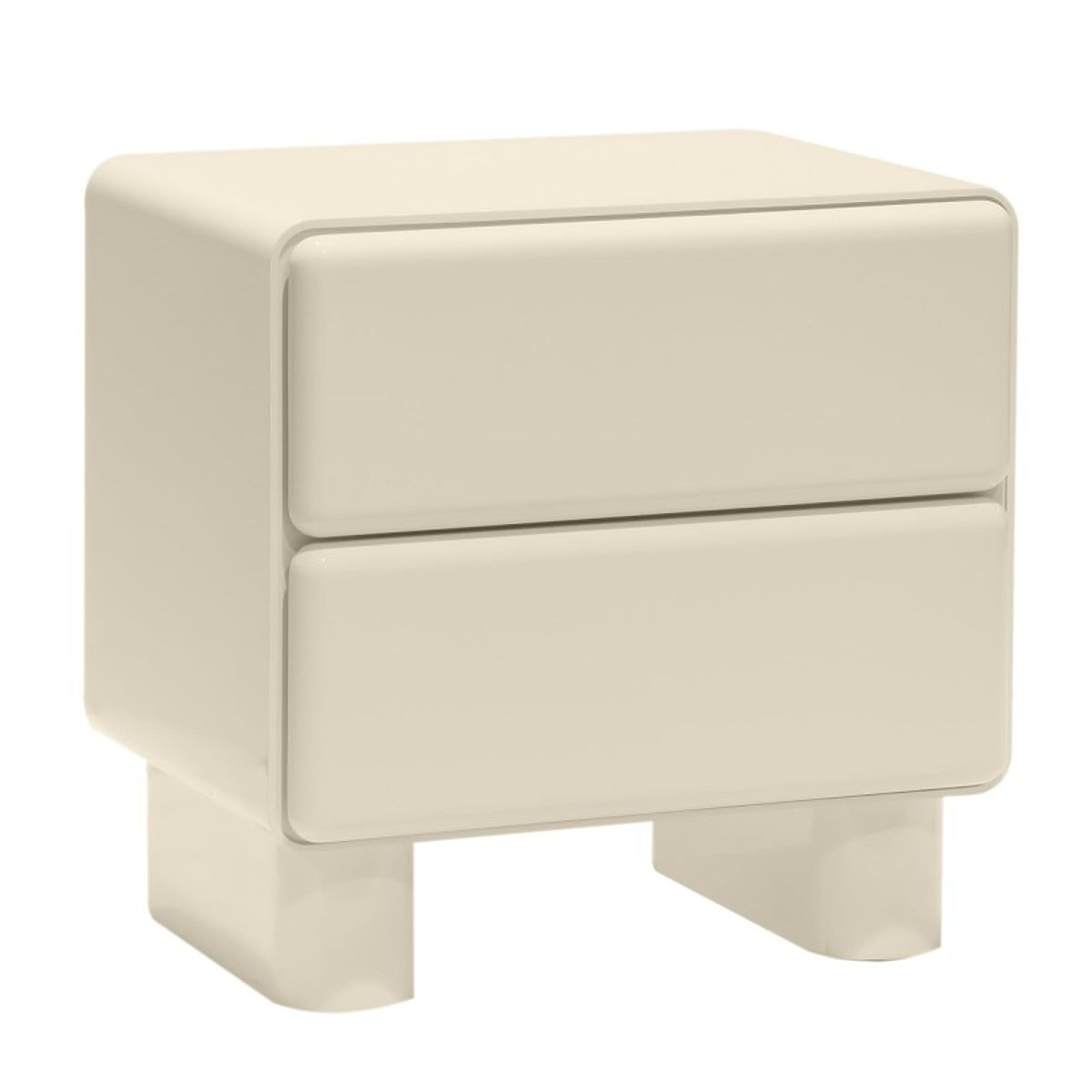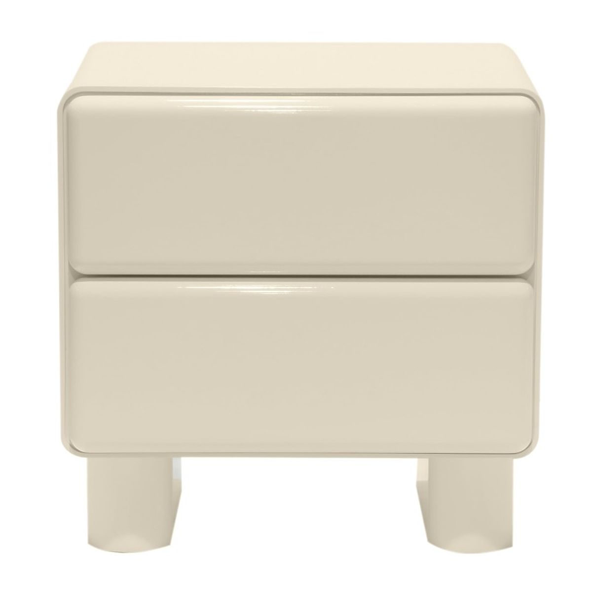 Lukafurniture.cz » Stoly a stolky / Noční stolky / Noční stolek s šuplíky Lagos, krémově bílý, zaoblený, lesklý