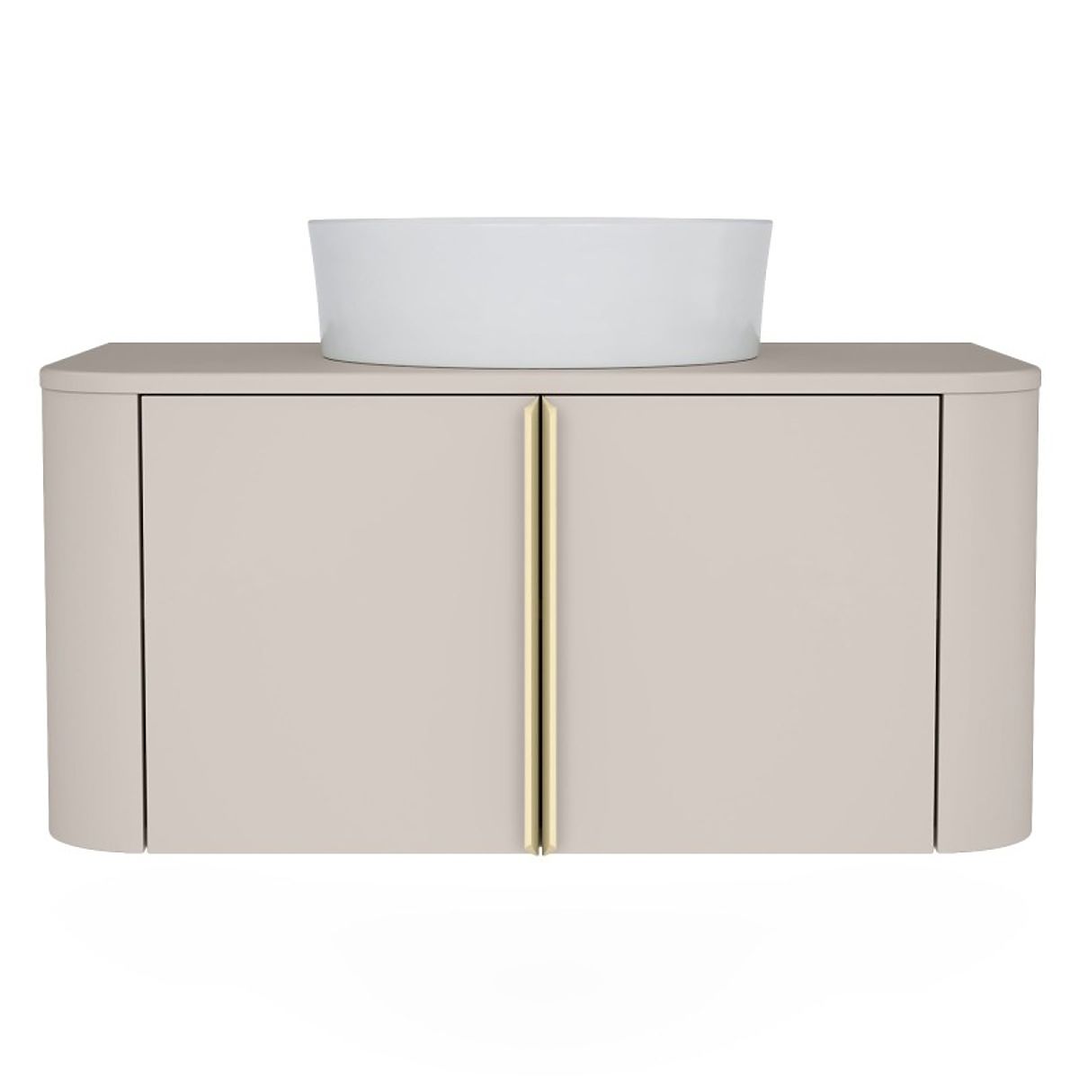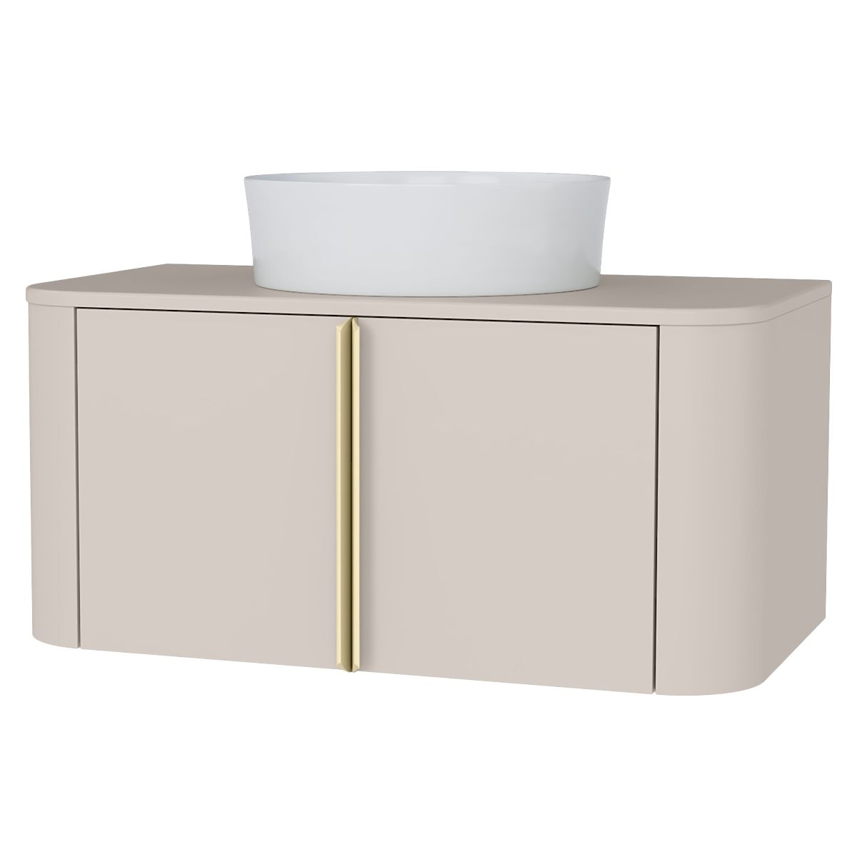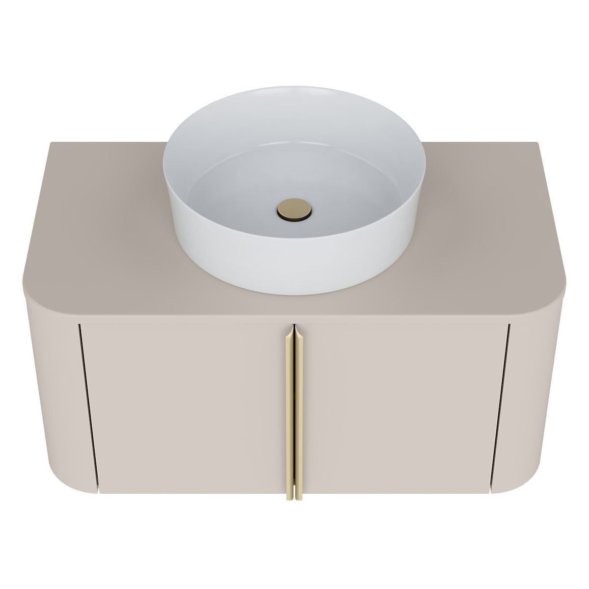 Lukafurniture.cz » Koupelna a WC / Koupelnové skříňky / Skříňka pod umyvadlo na desku Bassa 80 cm, kašmírová, zlaté úchyty, zaoblená