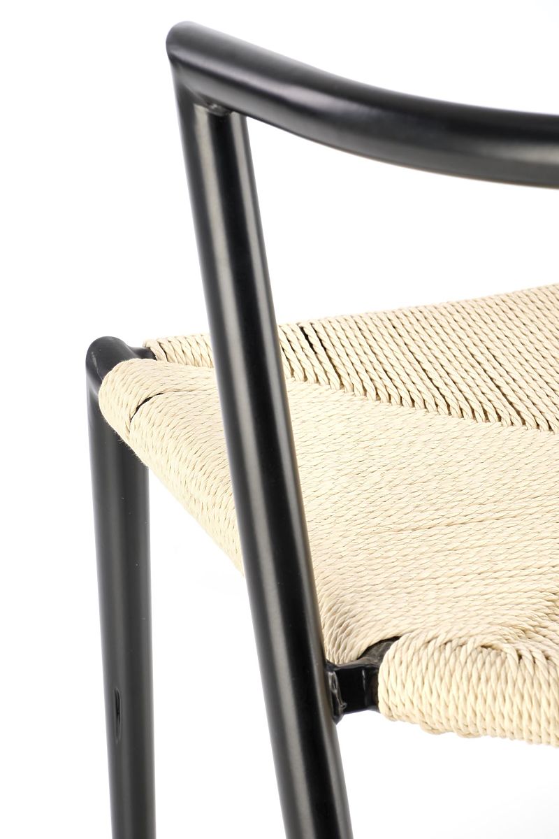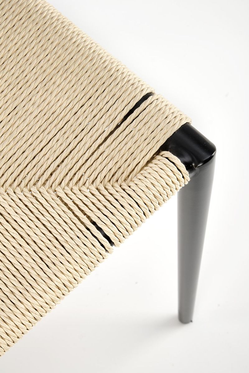 Jídelní židle SCK-515 zaujme moderním designem a zajímavou kombinací kovové konstrukce s přírodně laděným sedákem. Minimalistické provedení v černé barvě doplněné šňůrově vyplétaným sedákem vytváří stylový kontrast, který se skvěle hodí do moderních jídelen i kuchyní.