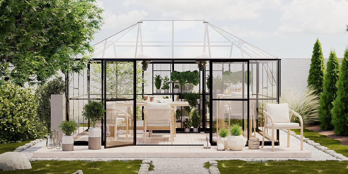 Lukafurniture.cz » Zahrada / Altánky / Zahradní oranžerie ProGlass Gazebo Standard se základem 12 m² tvrzené sklo 4 mm, hliník, černá