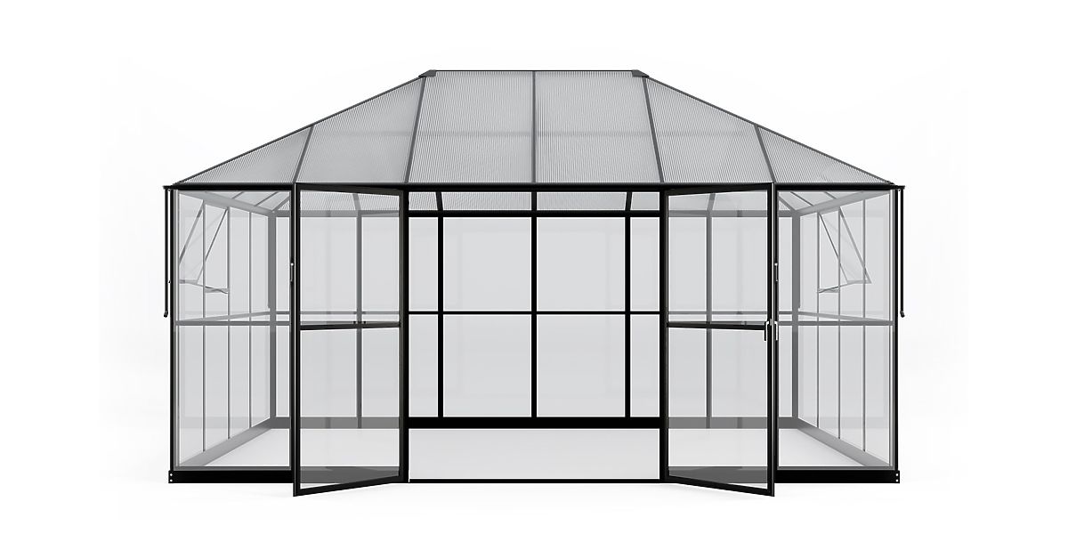 Lukafurniture.cz » Zahrada / Altánky / Zahradní oranžerie EcoGlass Gazebo Standard s základem 12 m² tvrzené sklo 4 mm, polykarbonát 6 mm