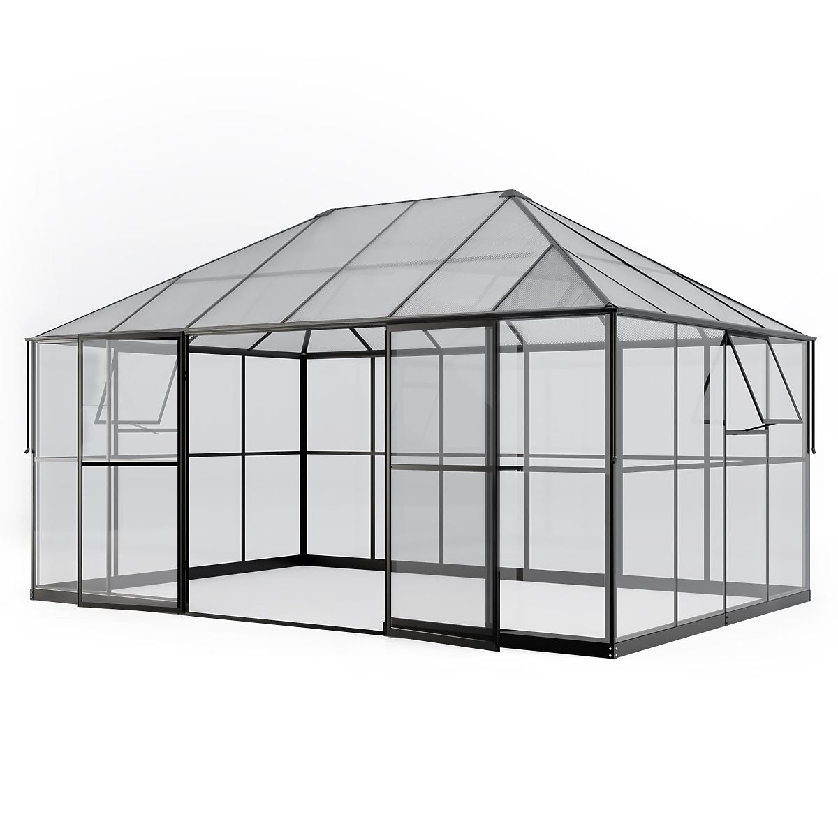 Zahradní oranžerie s tvrzeným sklem a polykarbonátovou střechou. .. více
