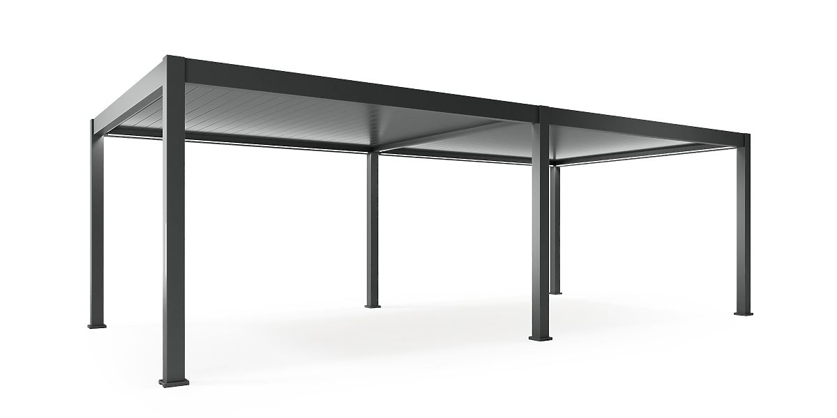 Lukafurniture.cz » Zahrada / Altánky / Volně stojící zahradní pergola Lumera z hliníku, 4x8 m, bioklimatická, LED osvětlení, elektrická