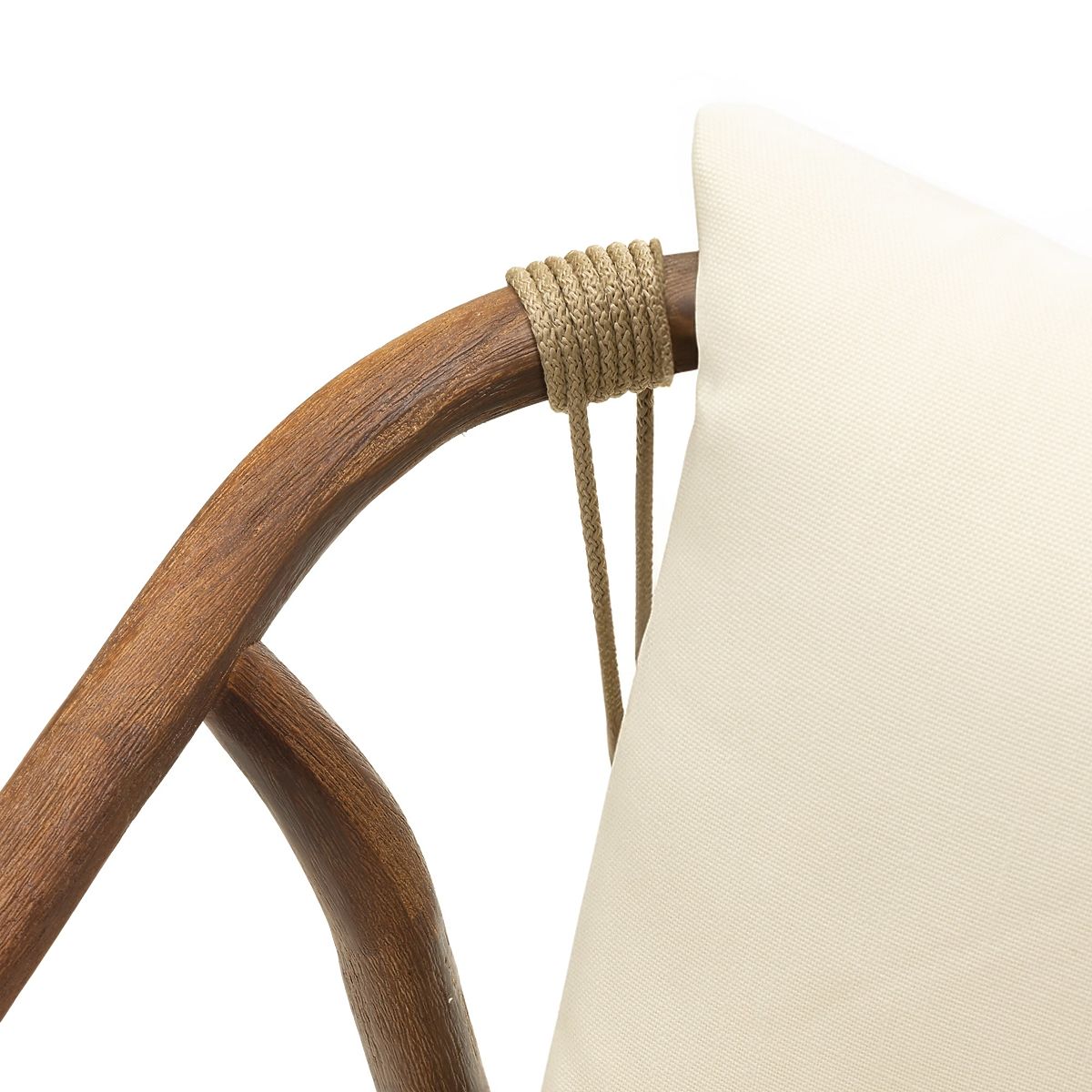 Set obsahuje čtyři stylové židle, jejichž zaoblený rám z akáciového dřeva zaručuje stabilitu a trvanlivost. Pletená opěradla a sedáky, vyrobené z odolného provazu, nejen přitahují pohled, ale také zajišťují vynikající cirkulaci vzduchu. Celek doplňují pohodlné polštáře, které zvou k relaxaci na čerstvém vzduchu. Použitá tkanina má hydrofobní vlastnosti, avšak pro zachování její trvanlivosti doporučujeme skladování na chráněném místě během deště.