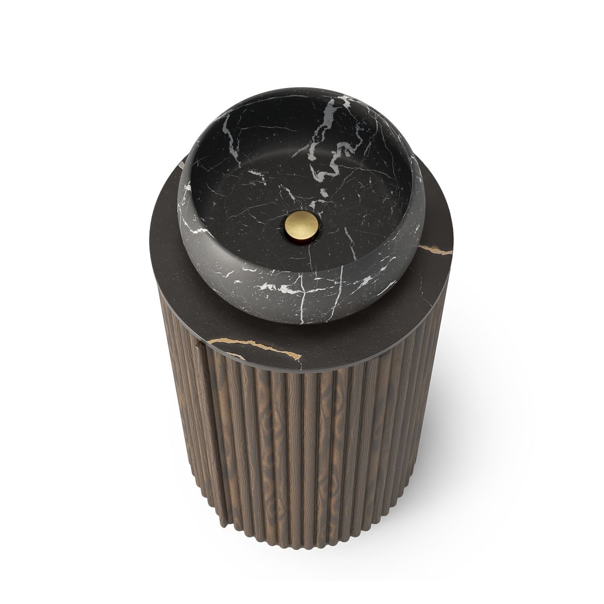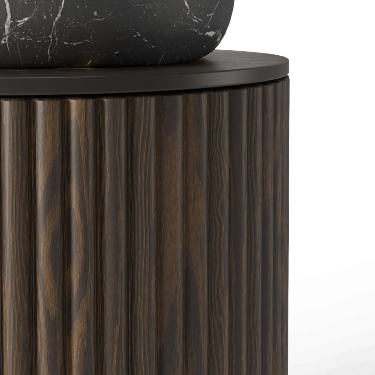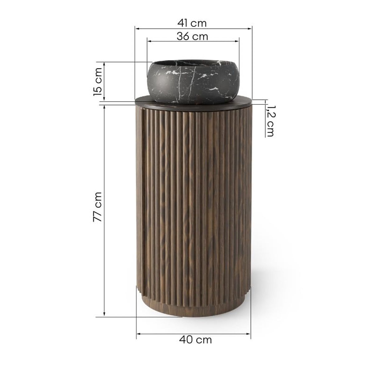 Lukafurniture.cz » Koupelna a WC / Koupelnové sestavy / Sada skříňky s deskou a umyvadlem La promessa 40 cm, rýhovaná, zaoblená, tmavý ořech/černá