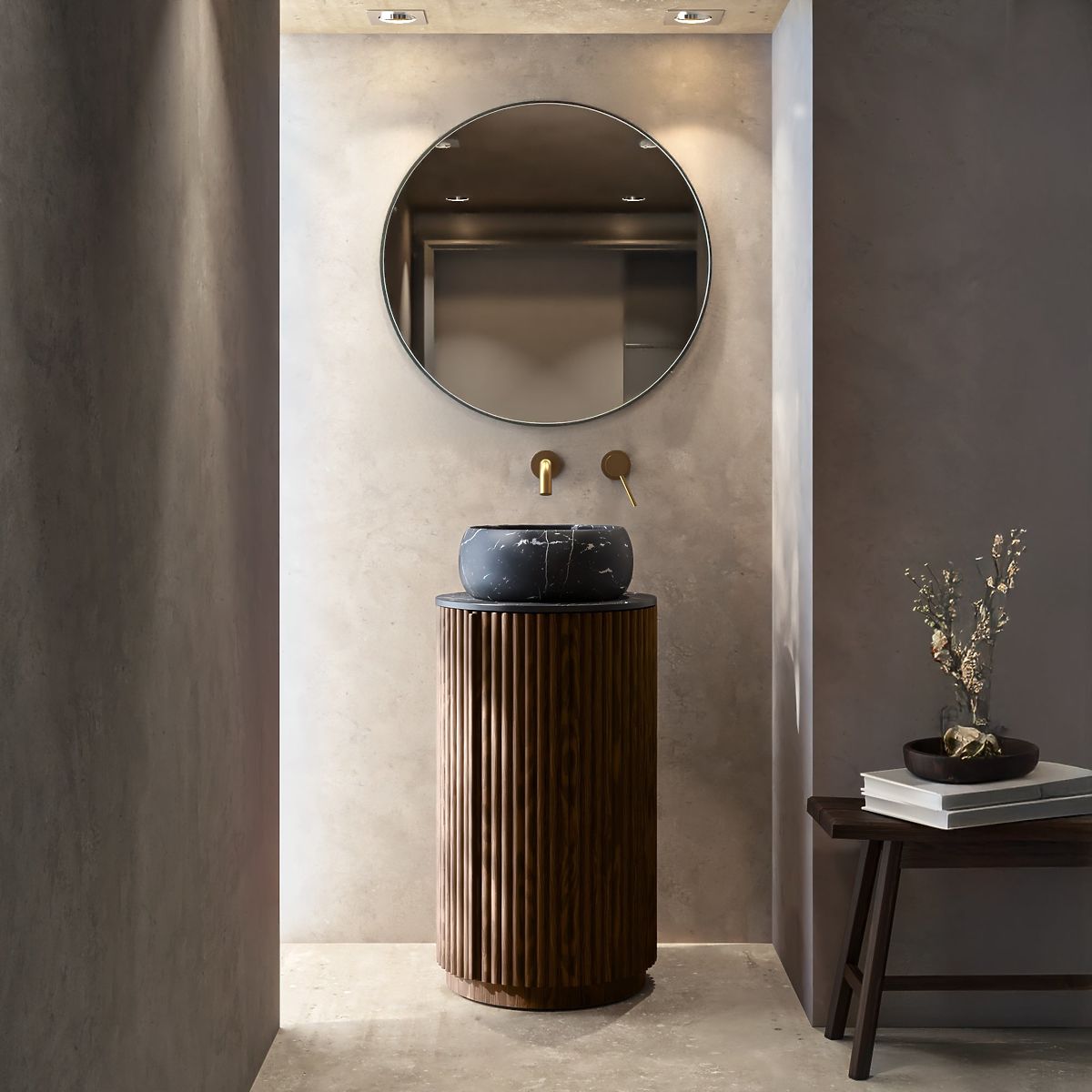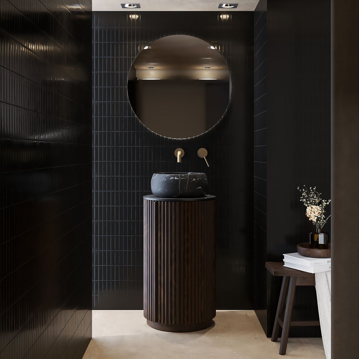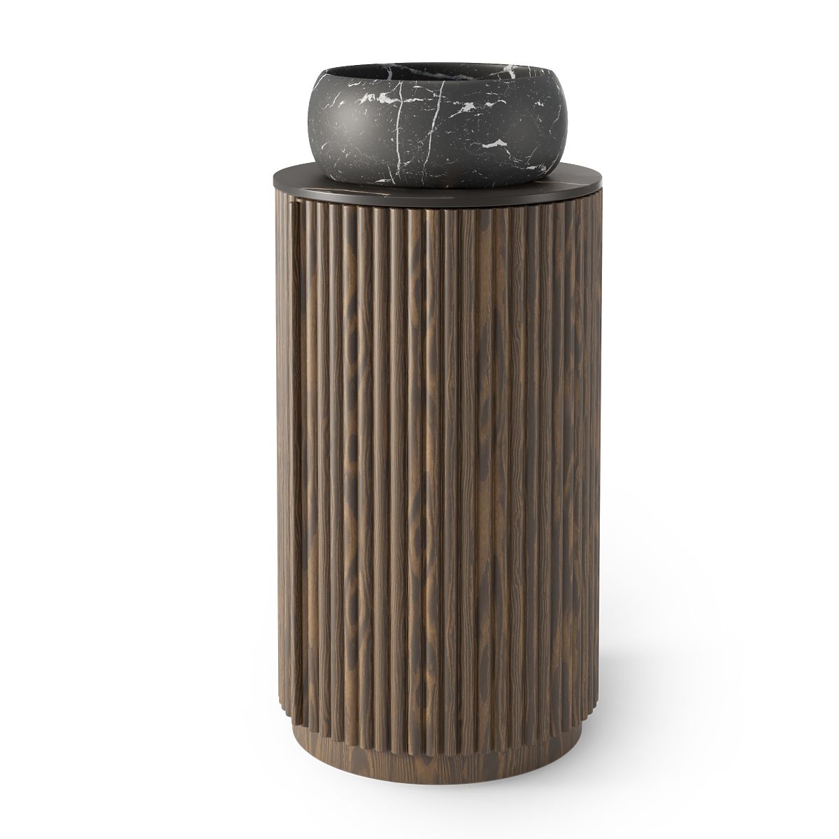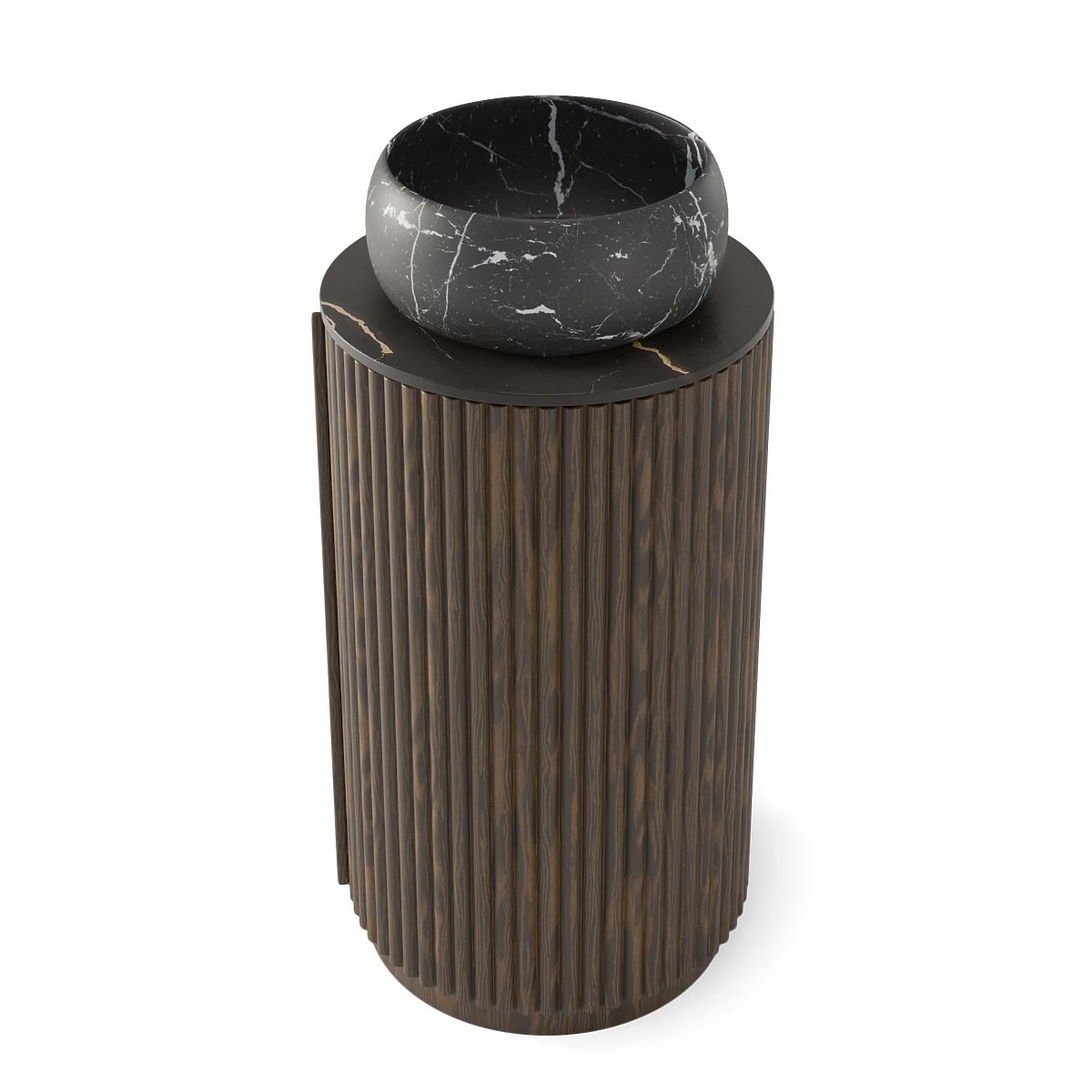 Lukafurniture.cz » Koupelna a WC / Koupelnové sestavy / Sada skříňky s deskou a umyvadlem La promessa 40 cm, rýhovaná, zaoblená, tmavý ořech/černá