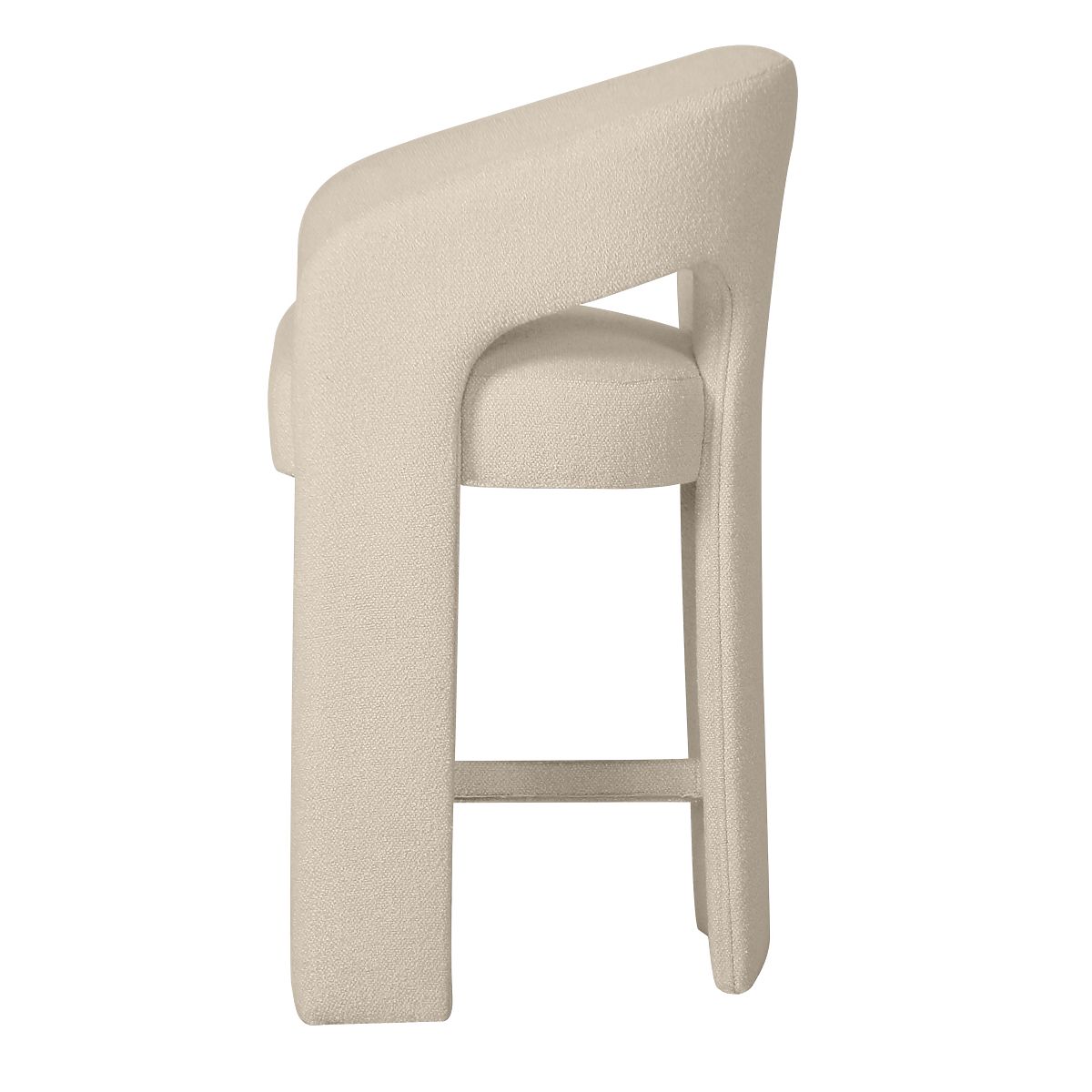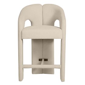 Čalouněná barová židle Castelo s oblými tvary a béžovou tkaninou. .. více