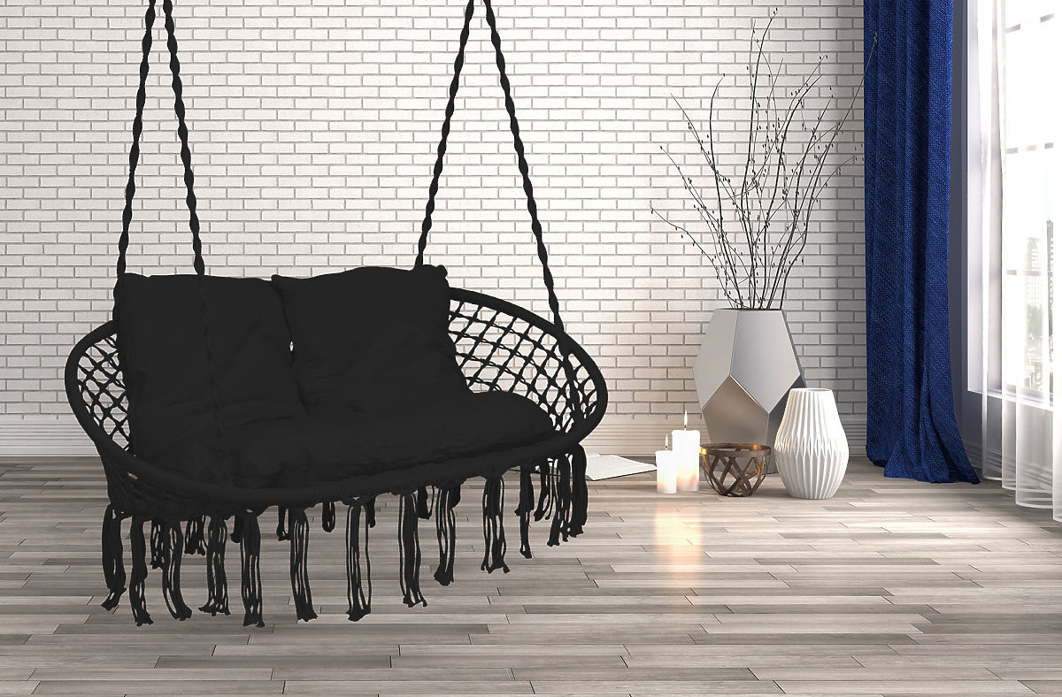 Závěsné křeslo Bocianí hnízdo LAGOS černé s polštáři