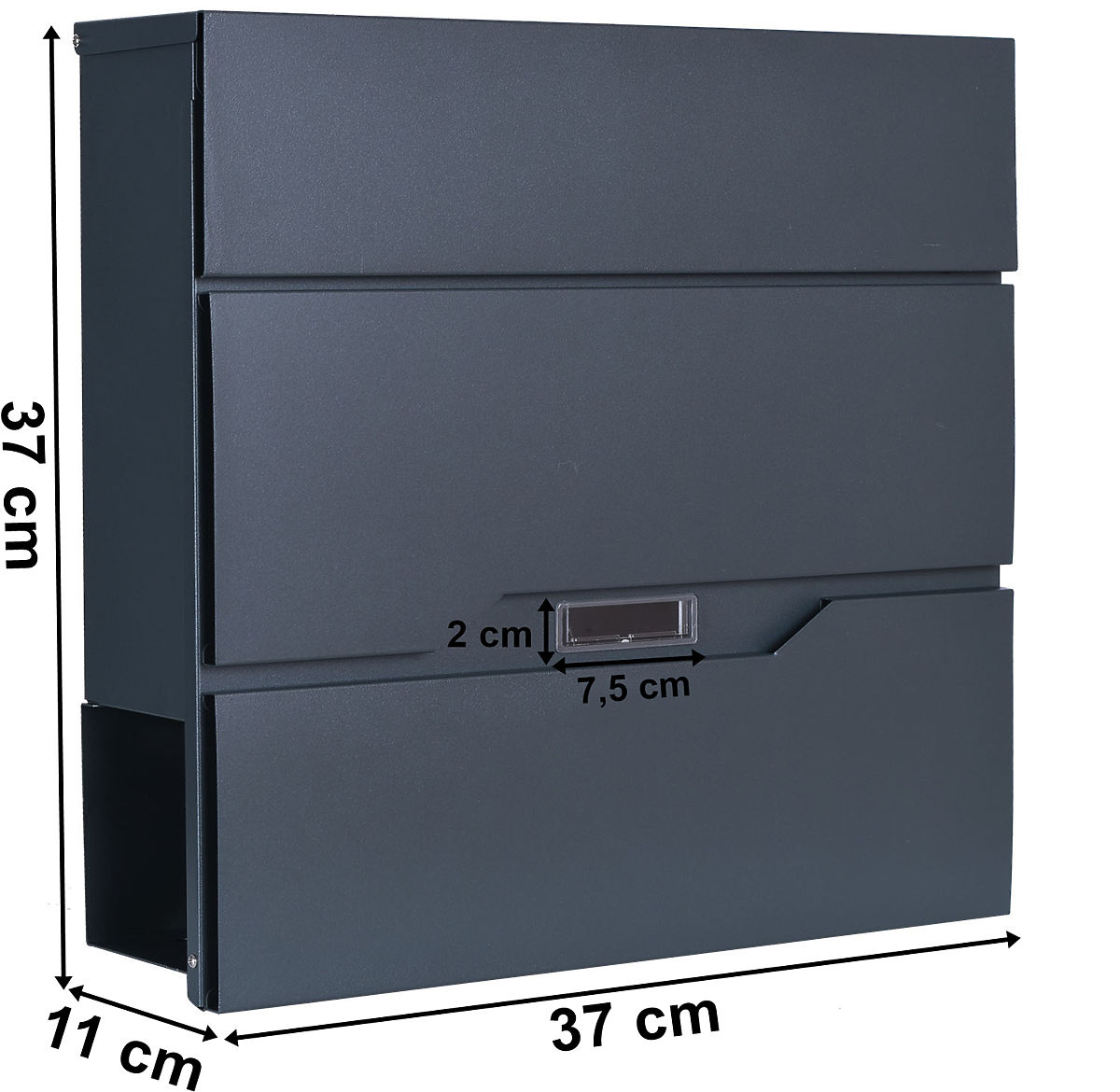 Stylová a funkční poštovní schránka, která kombinuje moderní design s trvanlivostí! Rozměry 37 x 37 x 11 cm, pevná pozinkovaná ocel s práškovým nástřikem a odolnost vůči povětrnostním vlivům zajišťují, že je ideální pro venkovní i vnitřní použití. Praktické adresní okénko umožňuje okamžitě vidět čekající korespondenci. Otvor na dopisy 33 x 3,5 cm, další místo na noviny a uzamčení na klíč – schránka Vidar je bezpečnost a pohodlí!