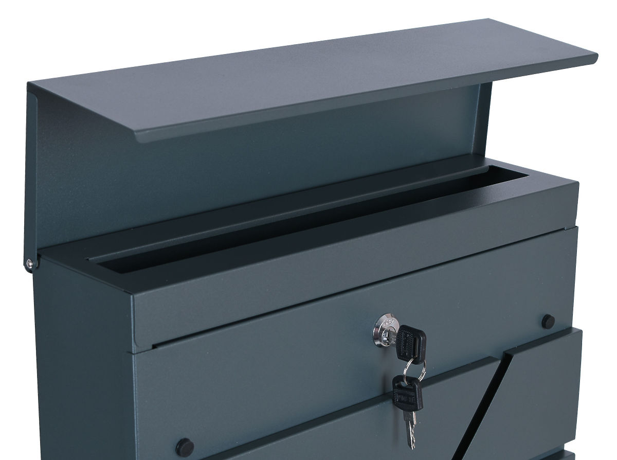 Praktická poštovní schránka z galvanizované oceli s práškovým nástřikem. Moderní a nadčasový styl, který nelze přehlédnout. Schránka nejen plní základní funkce, ale také potěší oko a vzbudí závist vašich sousedů! Vyrobena z vysoce kvalitních materiálů odolných vůči povětrnostním vlivům, díky čemuž je veškerá korespondence velmi dobře chráněna.