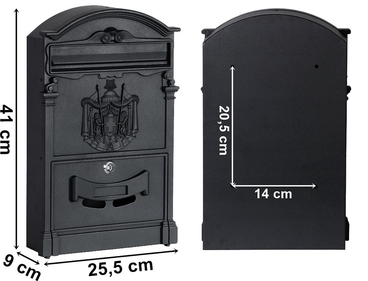 Praktická poštovní schránka z pozinkované oceli lakované práškovou barvou. Nadčasový styl, který nelze přehlédnout. Schránka se vyznačuje širokým vhozem a čitelným okénkem na název ulice. Vyrobena z vysoce kvalitních materiálů odolných vůči povětrnostním vlivům, což zajišťuje, že veškerá korespondence je velmi dobře chráněna. Na přední straně schránky jsou dva malé otvory, díky nimž snadno zjistíme, zda na nás čeká nějaká pošta.