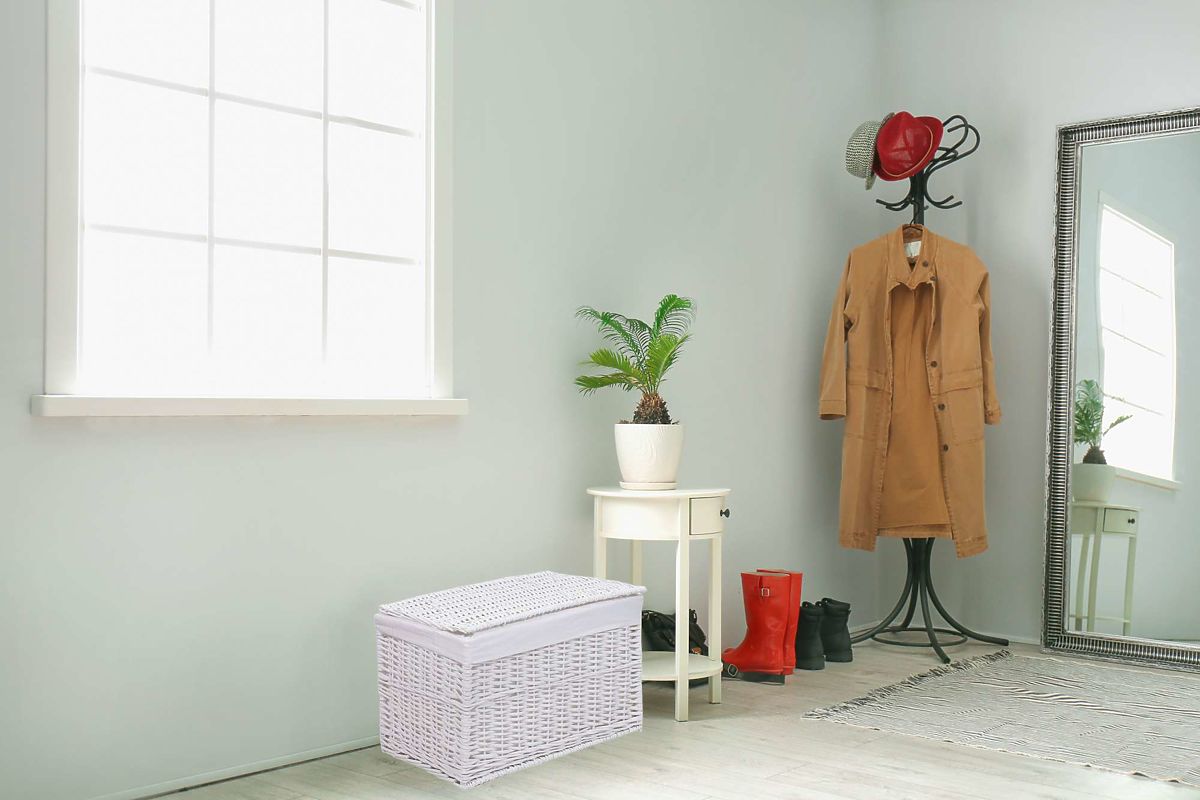 Proutěná truhla se ideálně hodí do koupelny a dalších místností, jako jsou ložnice, obývací pokoje a pokoje. Je velmi pěkným doplňkem, který dodává dekorovaným místnostem charakter. Produkt je esteticky vyroben z proutí a uvnitř je dokončen lněnou výstelkou. Víko má pružné pásky sloužící jako panty.