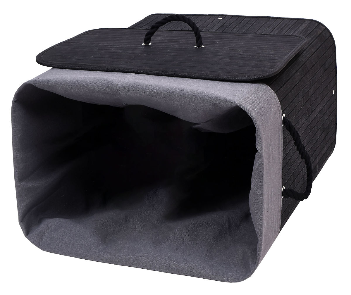 Bambusový koš na prádlo s víkem 80L černo-šedý