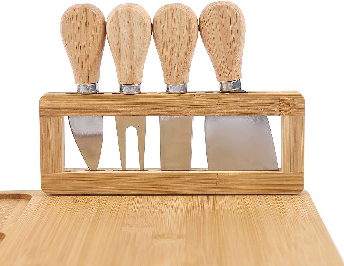 Včetně: prkénko + komplet příborů z nerezové oceli na stojanu