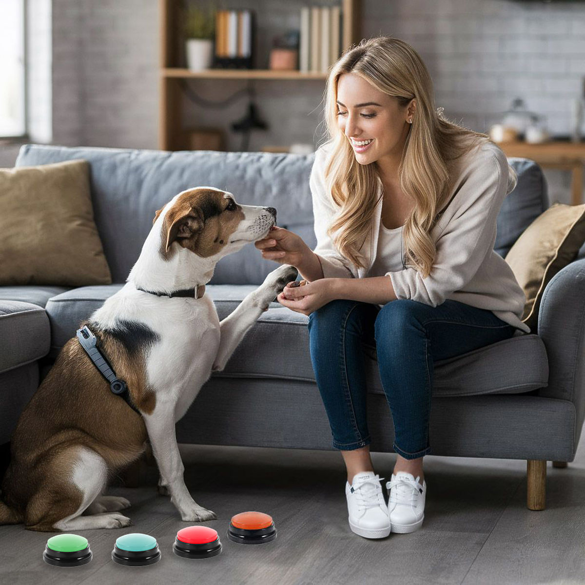 Chtěli byste zlepšit komunikaci a posílit pouto se svým mazlíčkem? Naše sada 4 zvukových tlačítek pro psa Talker je ideálním řešením! Díky tomuto inovativnímu produktu můžete nahrávat zvuky, které vám pomohou komunikovat se svým zvířetem snadno a intuitivně, a přitom se skvěle bavit!
