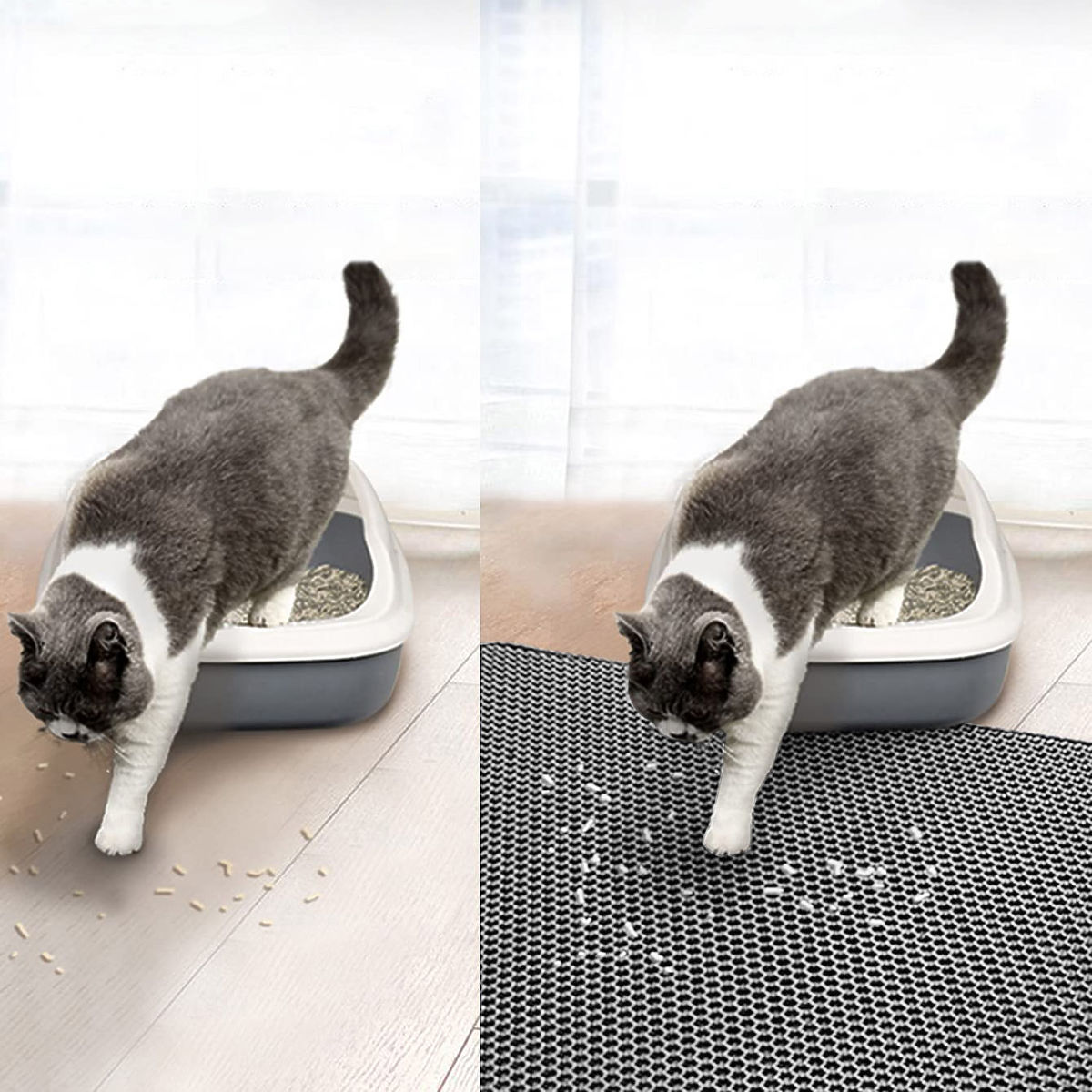 Podložka Catsy je nezbytným doplňkem pro majitele koček. Je vyrobena z vysoce kvalitní EVA pěny. Pomáhá udržovat čistotu kolem kočičího záchodu tím, že zabraňuje zanechávání stop steliva, které se sype z kočičích tlapek po každém opuštění záchodu. Otvory ve tvaru včelích plástů jsou zodpovědné za zachytávání zbytků steliva z kočičích tlapek, díky čemuž váš byt zůstává čistý bez nutnosti každodenního úklidu.