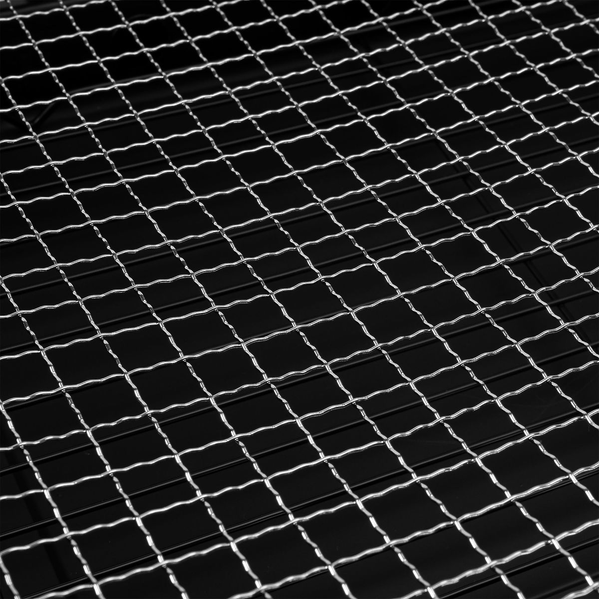 ✅ Velký, hustě spletený rošt z chromované nerezové oceli