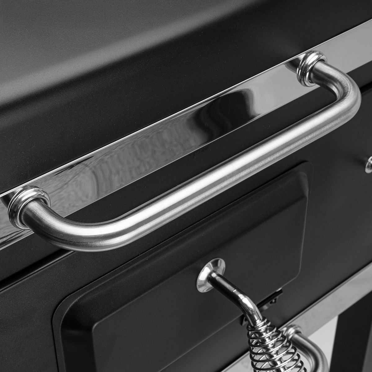 Prostorná spodní police: Další místo pro uložení grilovacích doplňků.