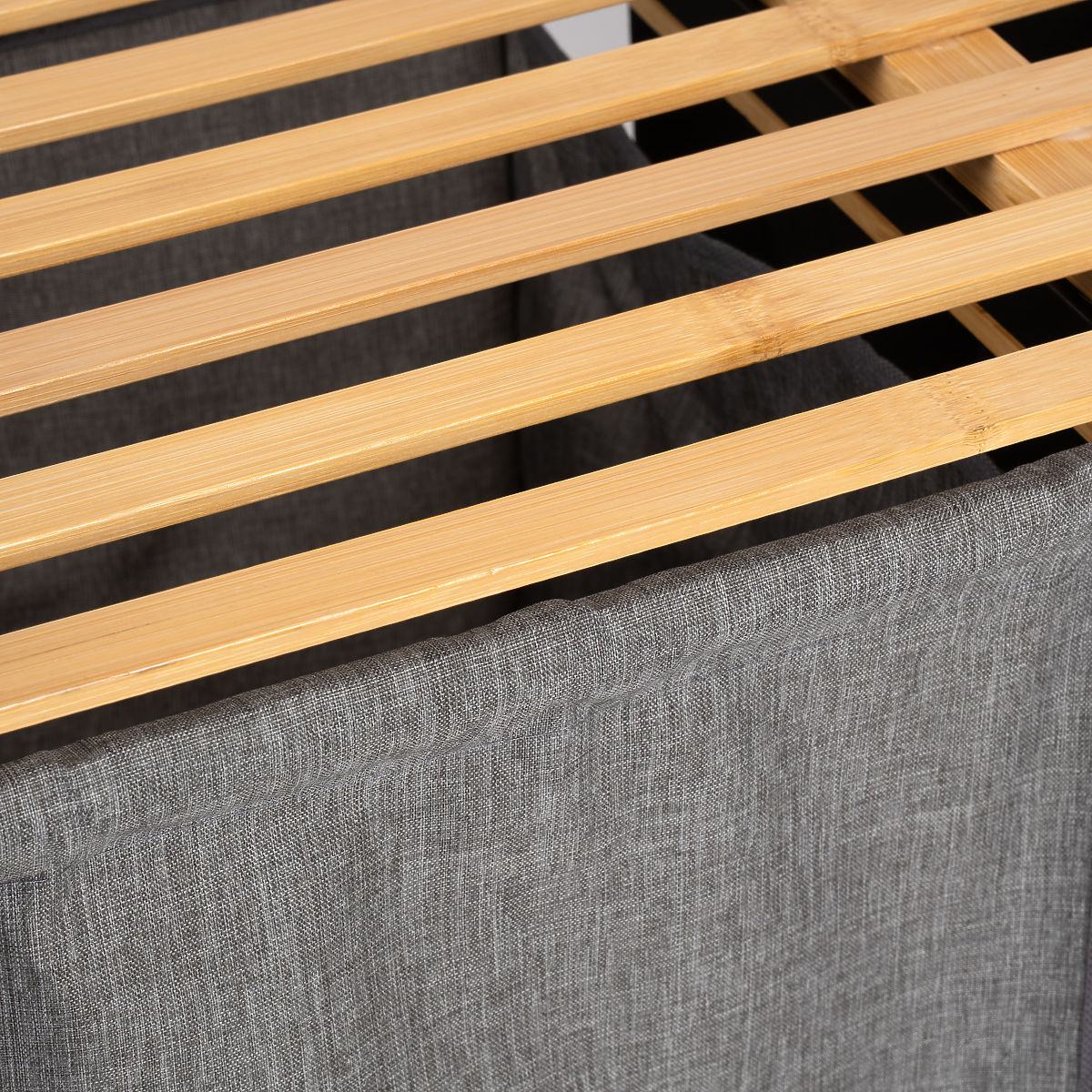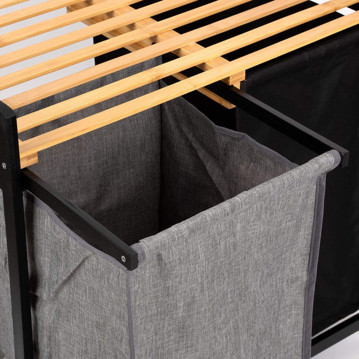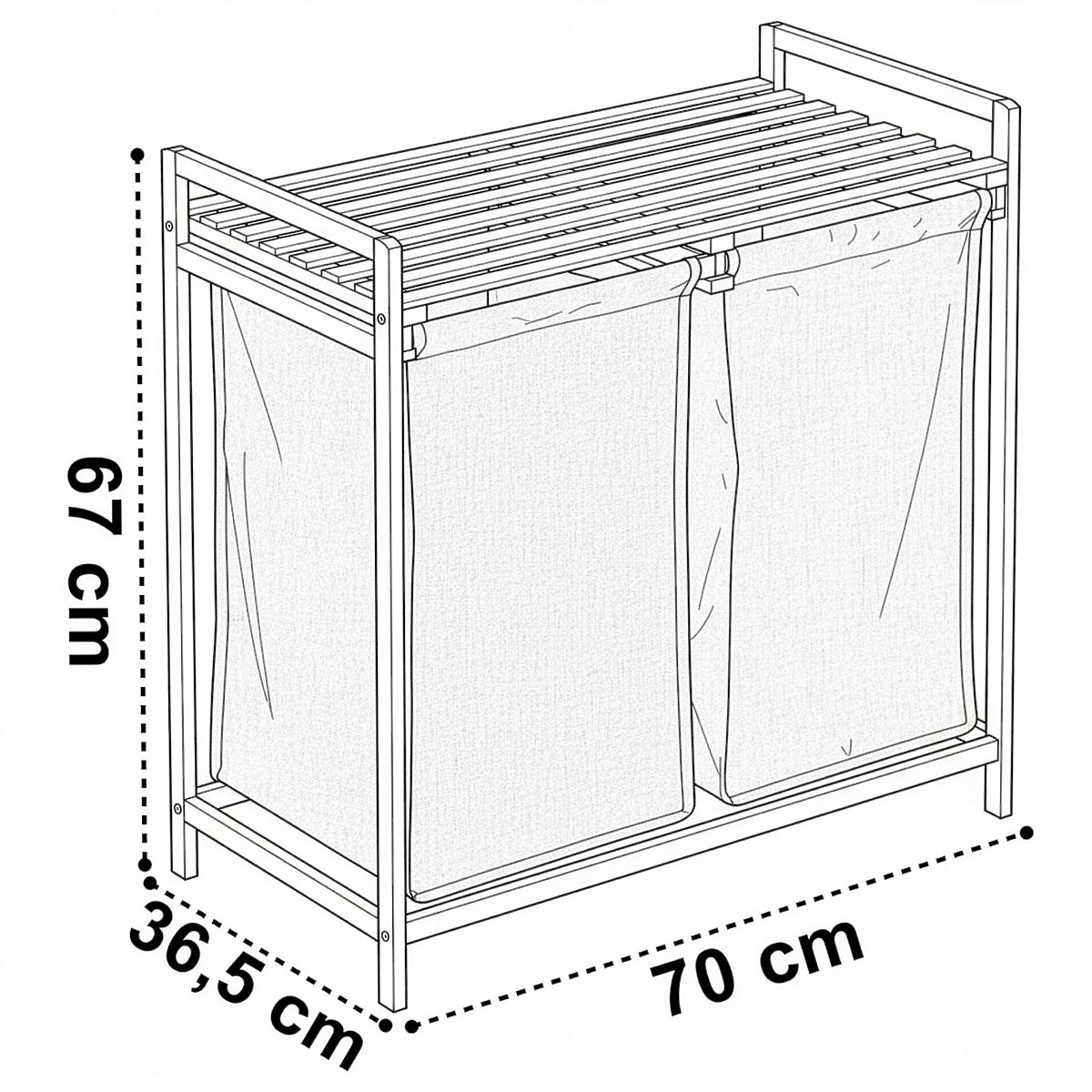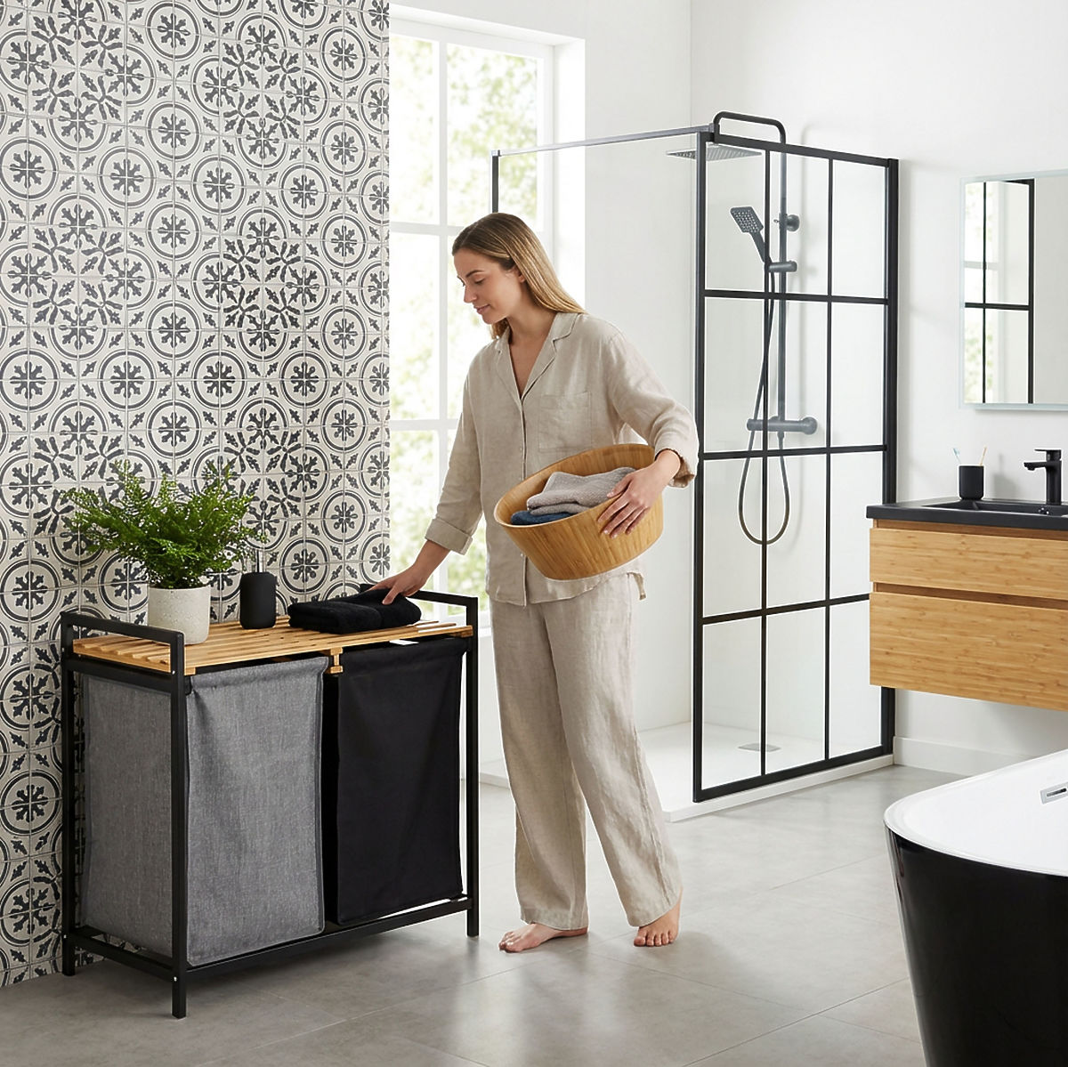 Bambusový koš na prádlo Hanoi Black Duo Barva je stylové a funkční řešení pro moderní koupelnu. Kapacita 80 litrů a rozdělení na dvě komory usnadňují třídění prádla. Praktická horní police je vhodná na detergenty, doplňky nebo dekorace. Látkové koše lze snadno vysouvat a jednoduchá montáž bez vrtání umožňuje rychle připravit koš k použití. Ideální pro loftové a moderní interiéry.