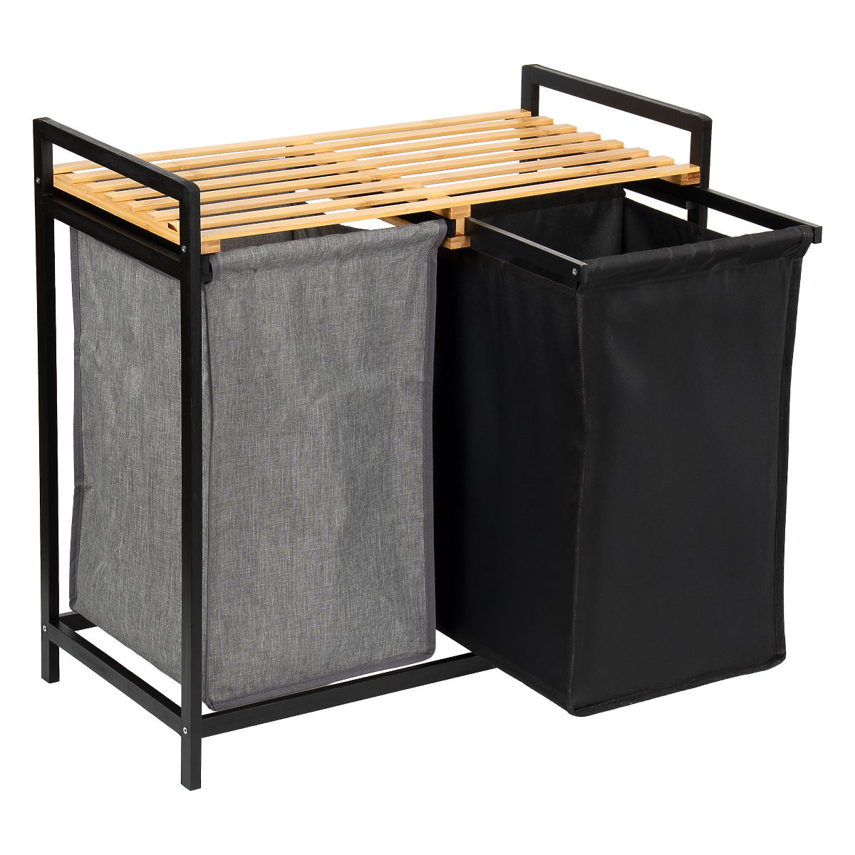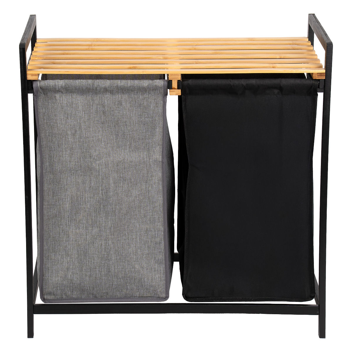 bambusový koš na prádlo nebo hračky HANOI BLACK 2 přihrádky DUO BARVA