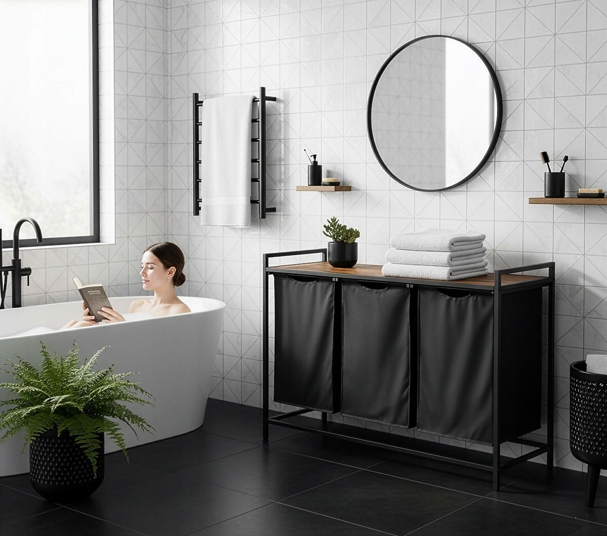 Tříkomorový koš na prádlo Artus je vynikajícím řešením pro ty, kteří si cení pořádku a funkčnosti v koupelnovém prostoru. Jeho loftový, industriální design se skvěle hodí do moderních interiérů, nabízející maximální pohodlí a úsporu místa. Tři oddělené komory umožňují přesnou segregaci prádla, což usnadňuje organizaci každodenních povinností. Navíc praktická police nad koši je ideálním místem pro ručníky a koupelnové doplňky. S košem Artus nejen obohatíte estetiku své koupelny, ale také zvýšíte její funkčnost.