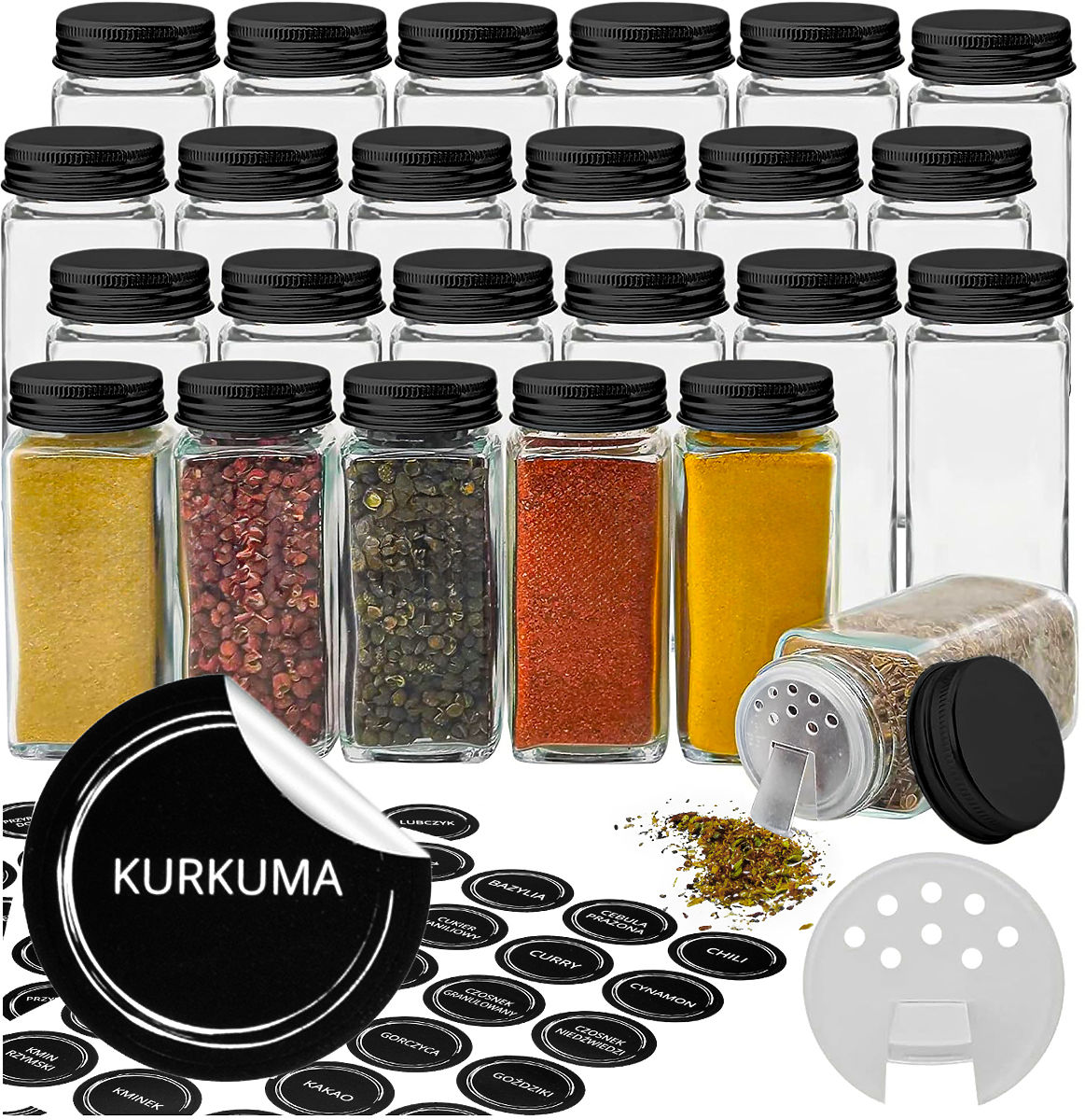 ✅Nálepky s názvy koření: Usnadňují rychlé nalezení potřebného koření, což výrazně zlepšuje komfort používání.