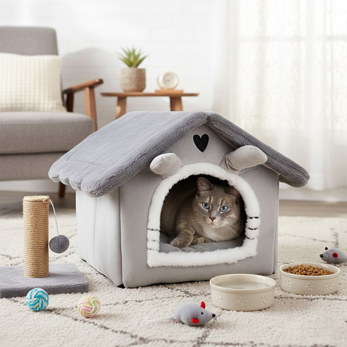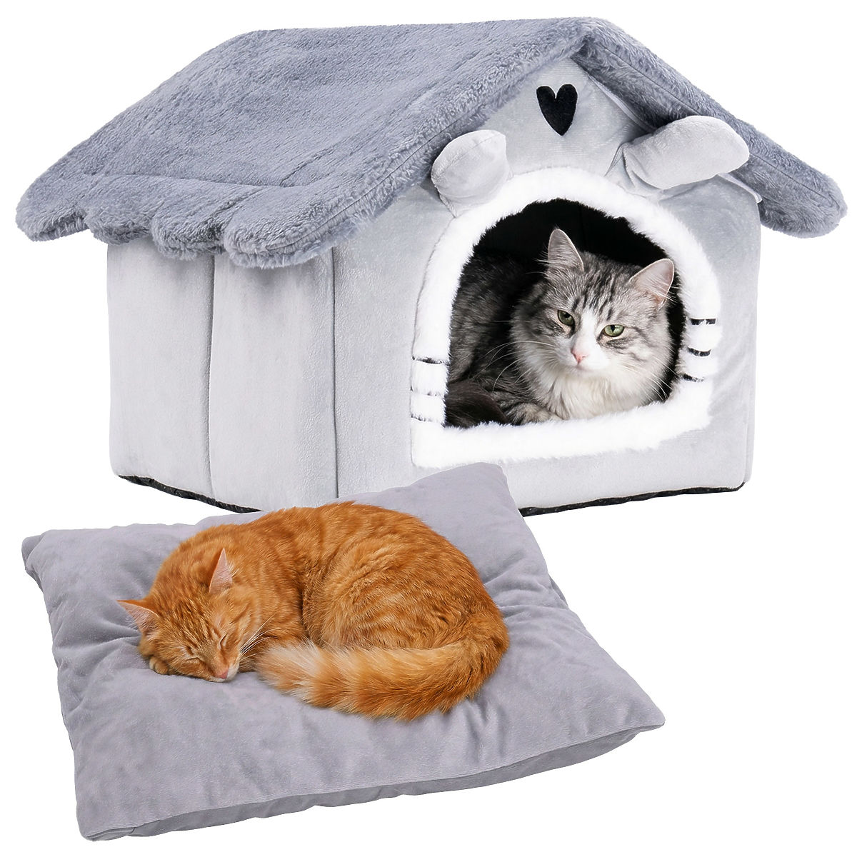 ✅ Plyšový a útulný: Příjemný na dotek materiál činí domek mimořádně pohodlným pro kočku.