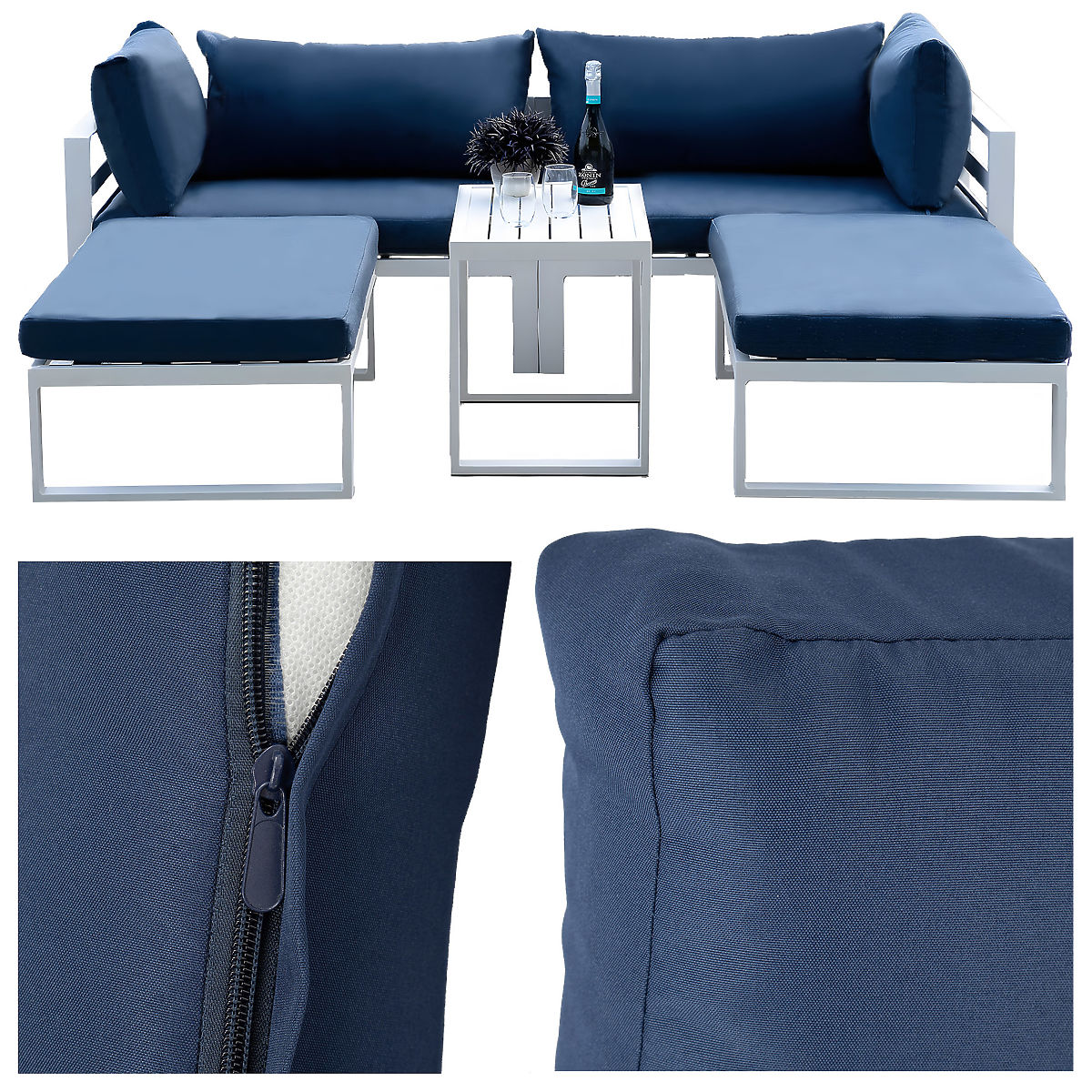 Sada zahradního nábytku Santo v bílé barvě je ideálním řešením pro ty, kteří chtějí užívat pohodlí a styl na čerstvém vzduchu. Díky modulární konstrukci můžete přizpůsobit uspořádání nábytku svým potřebám a vytvořit ideální místo pro relaxaci nebo setkání s rodinou a přáteli. Vysoká kvalita materiálů, jako je práškově lakovaný hliník, zajišťuje trvanlivost a snadnou údržbu. Odnímatelné potahy usnadňují čištění a možnost vyrovnání nožek a upevnění modulů zajišťuje stabilitu a pohodlí při používání. Výběrem sady Santo získáte nejen elegantní vzhled, ale také funkčnost a trvanlivost, které splní všechna vaše očekávání.