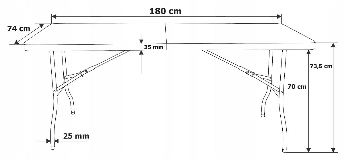 Cateringová sada, která obsahuje skládací stůl o délce 180 cm a 6 skládacích židlí, je ideální pro různé události. Pevnost zajišťuje konstrukce z oceli s práškovým nástřikem a odolný HDPE materiál, ze kterého je vyrobena deska a sedadla, zaručuje odolnost proti poškození. Jak stůl, tak židle jsou snadno přenosné – stůl má praktickou rukojeť a židle otvor v opěradle, což usnadňuje jejich transport. Celá sada je odolná vůči povětrnostním vlivům a protiskluzové nožky na nohách zajišťují stabilitu sady.