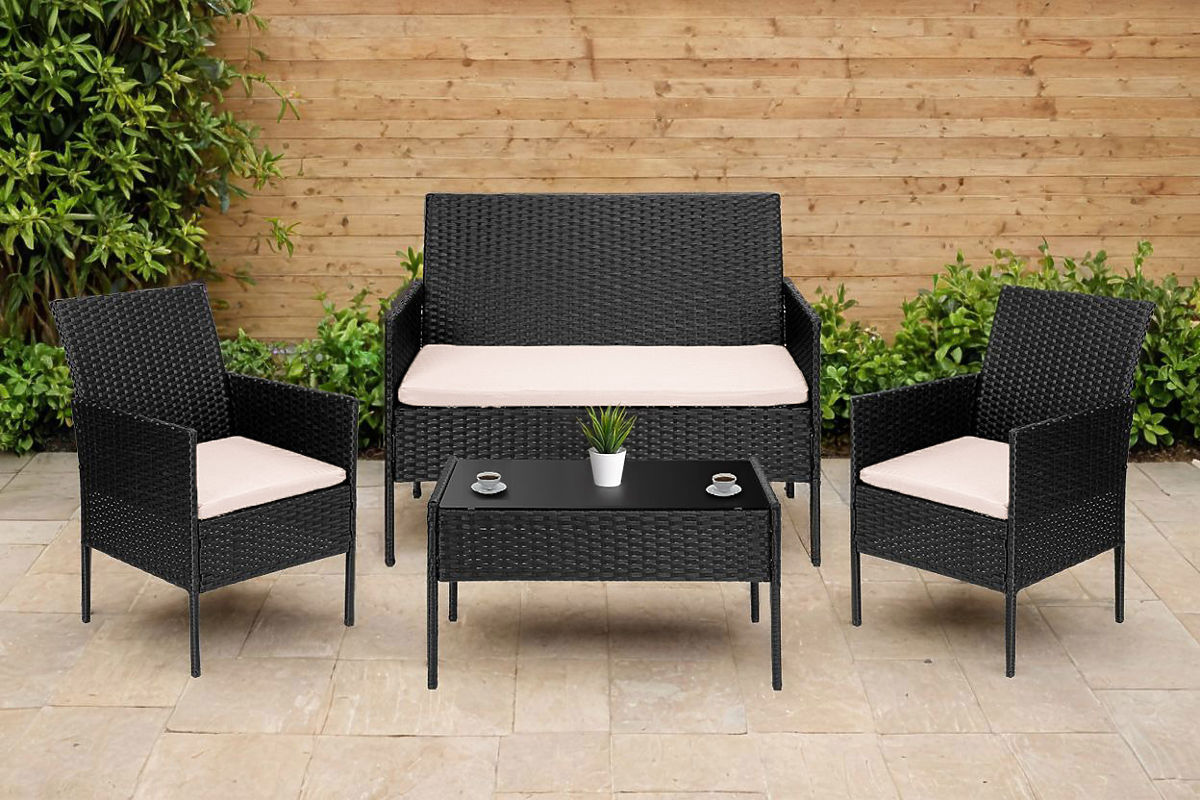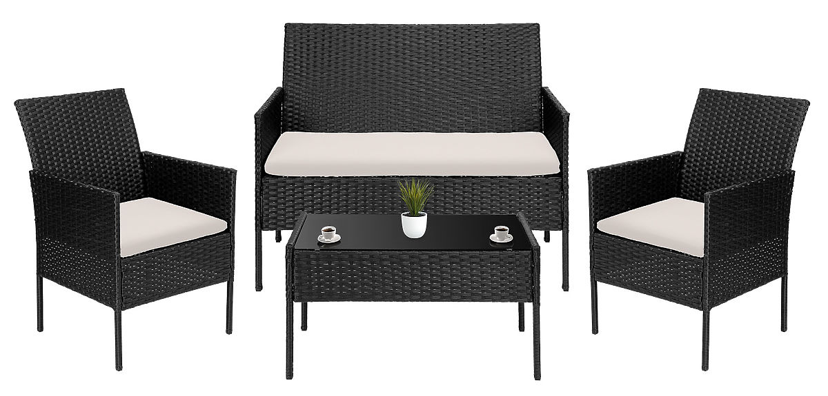 Zahradní nábytek z technoratanu sada 4v1 MAGNOLIA černá béžové polštáře