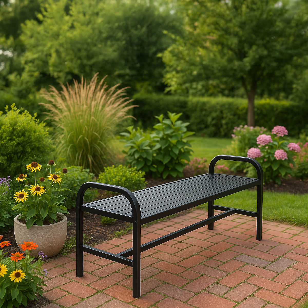 Černá lavička Sobo je moderní a odolné řešení pro každý venkovní prostor – skvěle se hodí do zahrady, na terasu a balkon. Vyrobena z pevné práškově lakované oceli a odolných plastových lamel imitujících dřevo, kombinuje elegantní vzhled s výjimečnou trvanlivostí. Stabilní konstrukce a snadná montáž z ní činí ideální volbu na dlouhá léta.