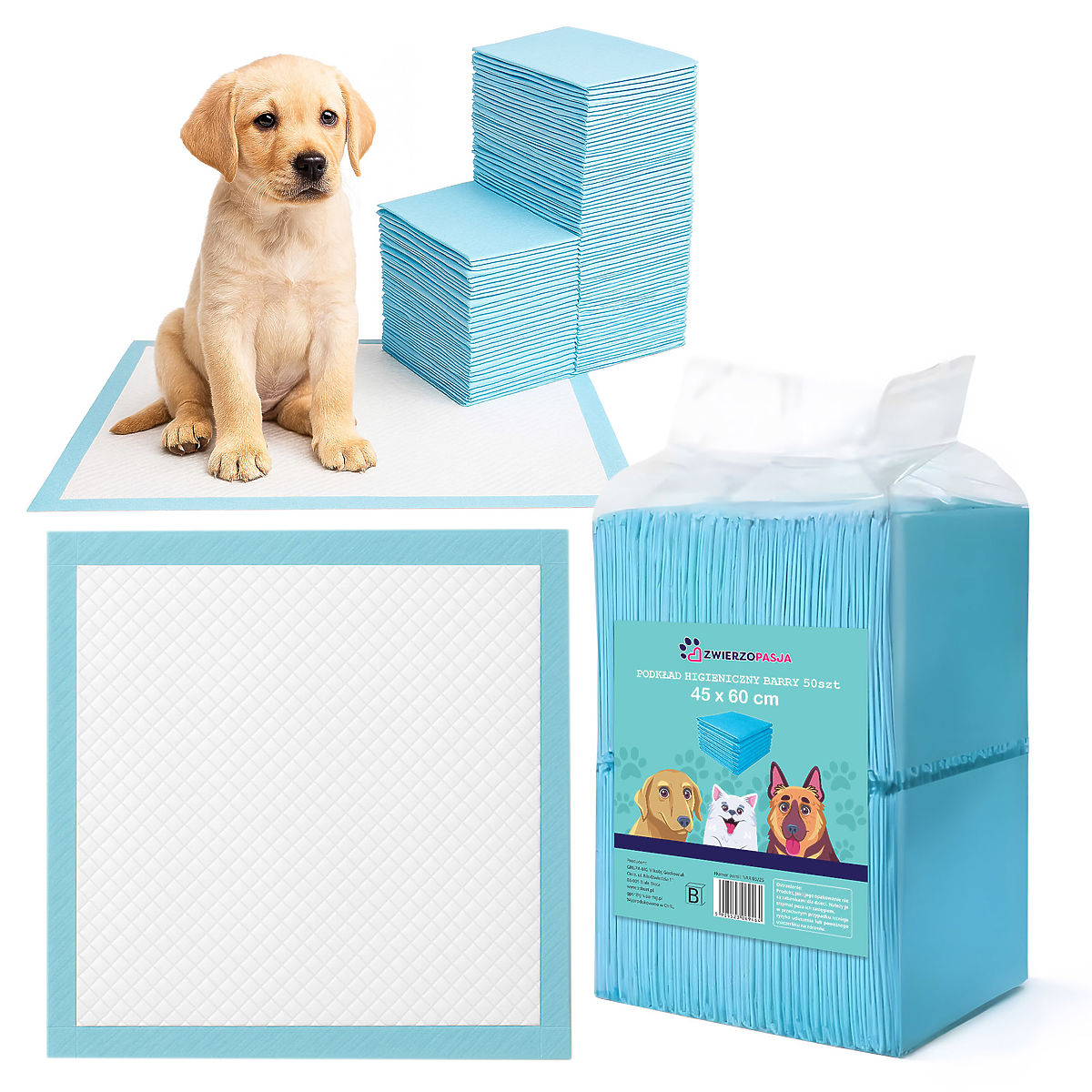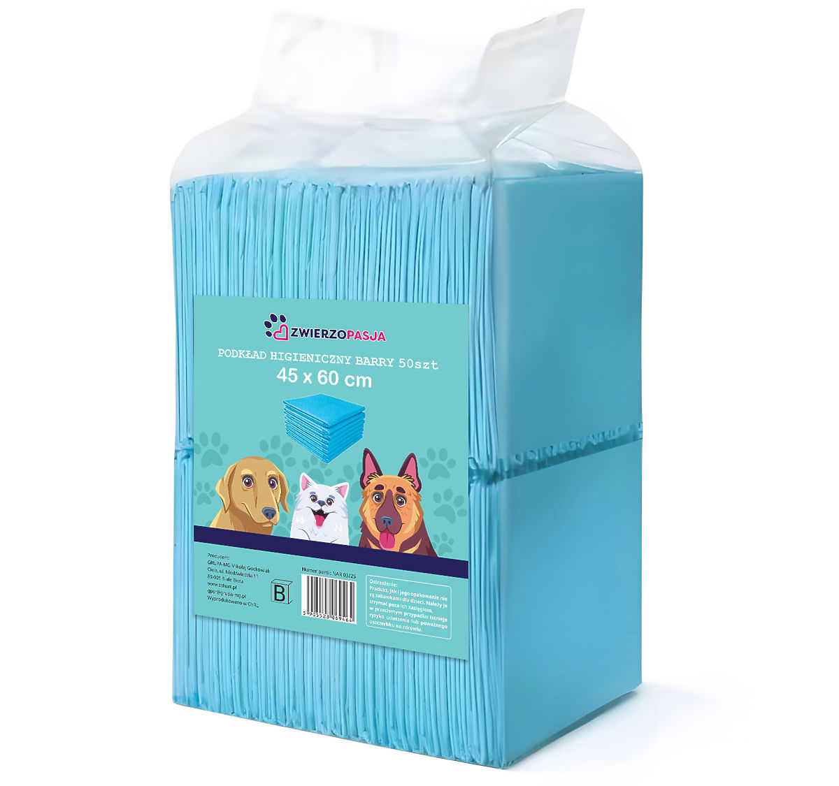 Hygienické podložky BARRY 45x60 50 ks. Použití: Pro malá zvířata | Velikost: 45 x 60 cm Hygienické podložky Barry jsou praktickou a spolehlivou podporou pro každého majitele psa. Usnadňují udržování čistoty v domácnosti, podporují hygienické návyky u štěňat a účinně chrání podlahy a pelíšky před znečištěním. Díky nim si vy i váš mazlíček můžete užívat větší pohodlí a klid každý den.
