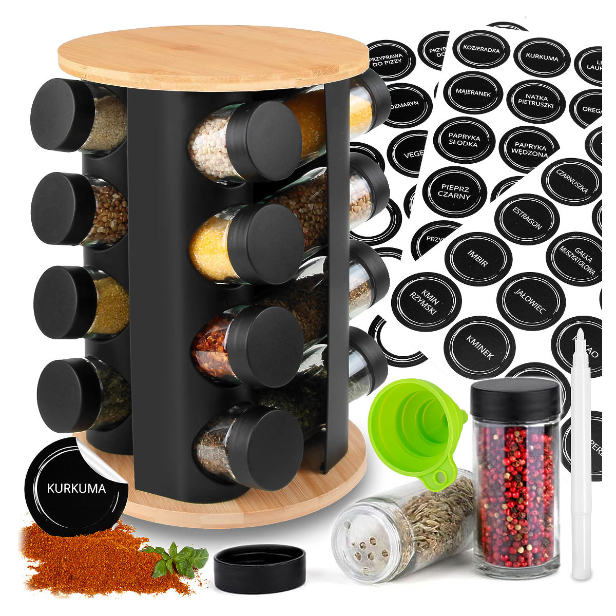 Otočný stojan na koření ROMERO 16 skleniček + 72 samolepek
