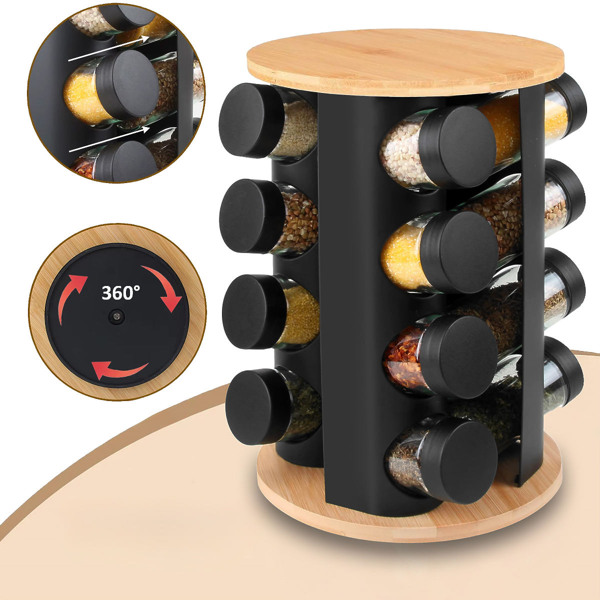 ✨Stojan na koření Romero - Praktický a otočný organizér s 16 nádobami!✨