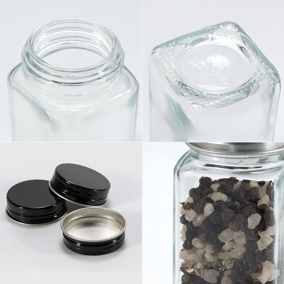 24 skleněných nádob na koření s hliníkovým víčkem a plastovým sítkem