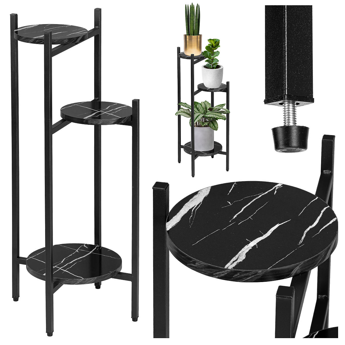 Tretorri je robustní stojan na květiny vyrobený z ocelových profilů lakovaných práškovou barvou a laminovaných desek imitujících mramor. Vyznačuje se jednoduchým designem a atraktivním vzhledem, který se hodí do každého moderně zařízeného interiéru ve stylu loft, moderním nebo glamour.