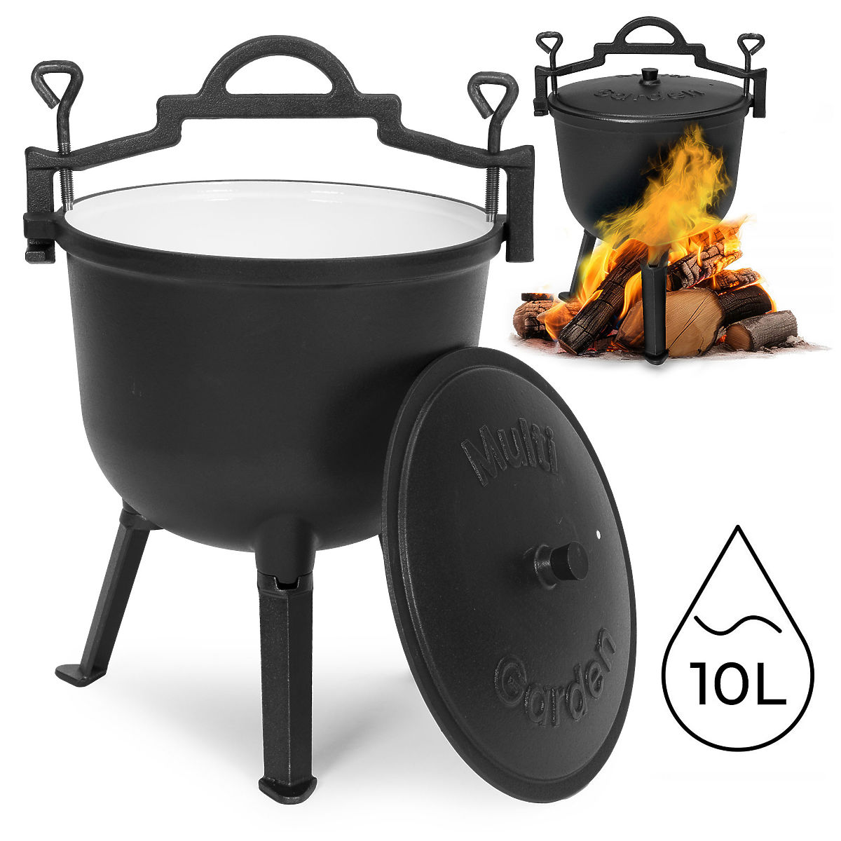 Lukafurniture.cz » Zahrada / Grily / Smalťovaný litinový kotlík 10L stojící lovecký hrnec ohniště gril MultiGarden